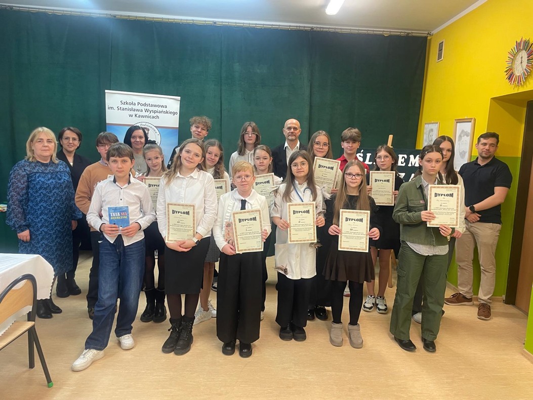 Dnia 13.02.2026 roku w Szkole Podstawowej im. Stanisława Wyspiańskiego w Kawnicach w ramach obchodów 70 – lecia szkoły odbył się Gminny Konkurs Recytatorski. Wzięli w nim udział uczniowie reprezentujący różne poziomy klas. W kategorii klas IV Magdalena Gauza, uczennica klasy IV, zaprezentowała utwór Danuty Wawiłow „Rupaki”, zdobywając pierwsze miejsce. W kategorii klas VII Nadia Szczepańska, uczennica klasy VII, przedstawiła interpretację „Piosenki o szczęściu” autorstwa Mariana Hemara i Juliana Tuwima, również zajmując pierwsze miejsce. Natomiast Michał Dryjer, reprezentujący klasę VII, zaprezentował wiersz Wisławy Szymborskiej „Nic dwa razy”, wykazując się dużą wrażliwością interpretacyjną.