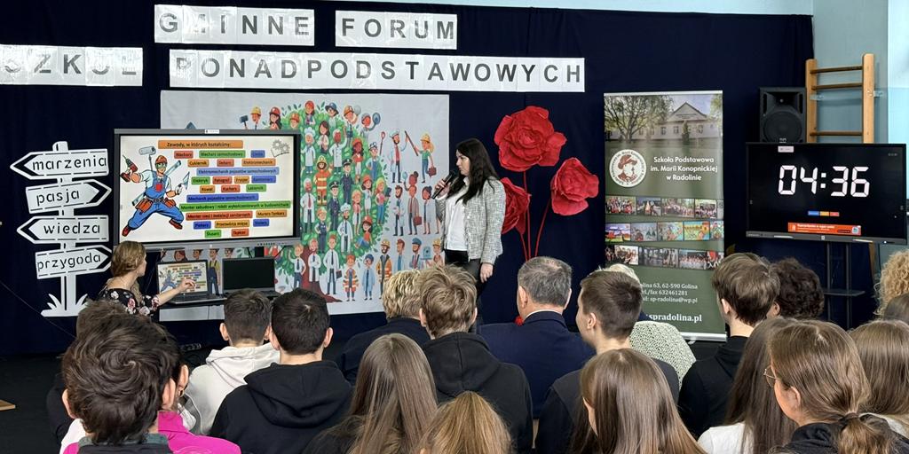 Przygotowanie młodzieży do świadomego i samodzielnego wyboru dalszej drogi edukacyjnej to jedno z najważniejszych wyzwań stojących przed szkołą. Planowanie kariery, podejmowanie trafnych decyzji edukacyjnych i zawodowych, a także poznanie własnych predyspozycji oraz realiów rynku pracy były głównymi celami Gminnego Forum Szkół Ponadpodstawowych.