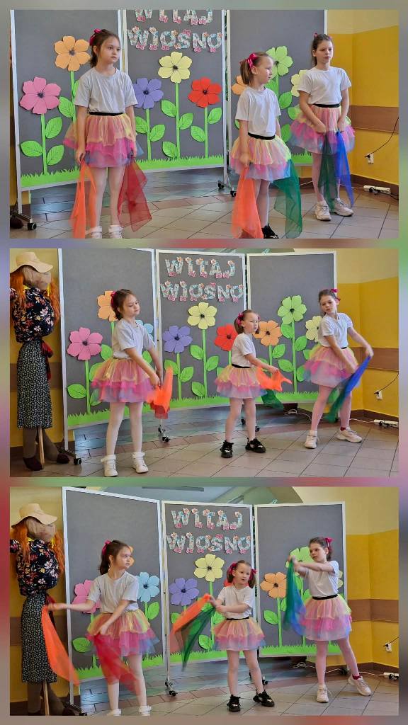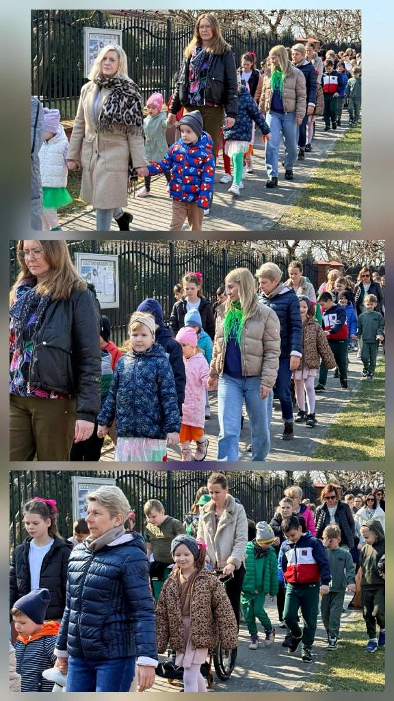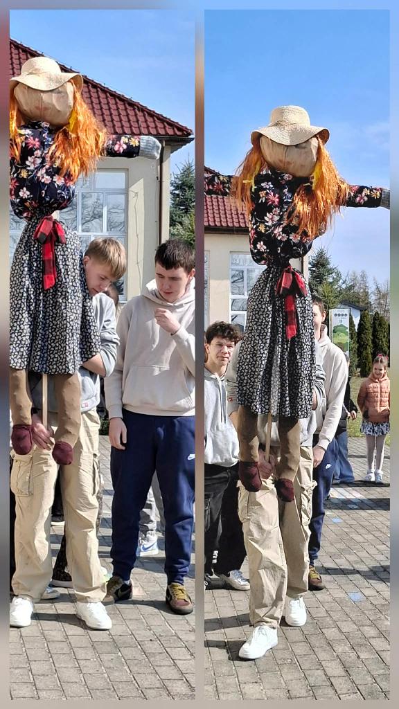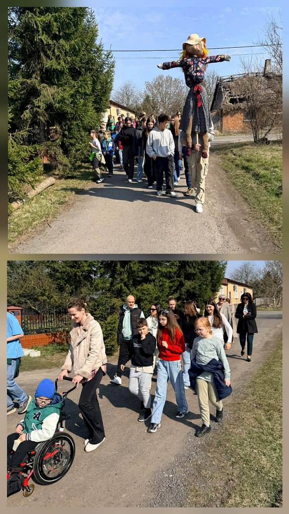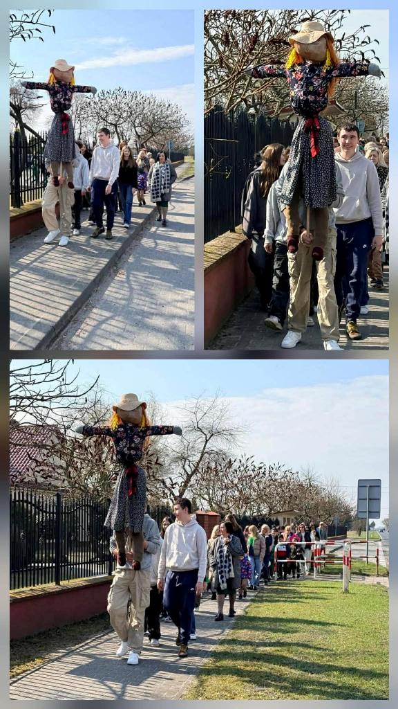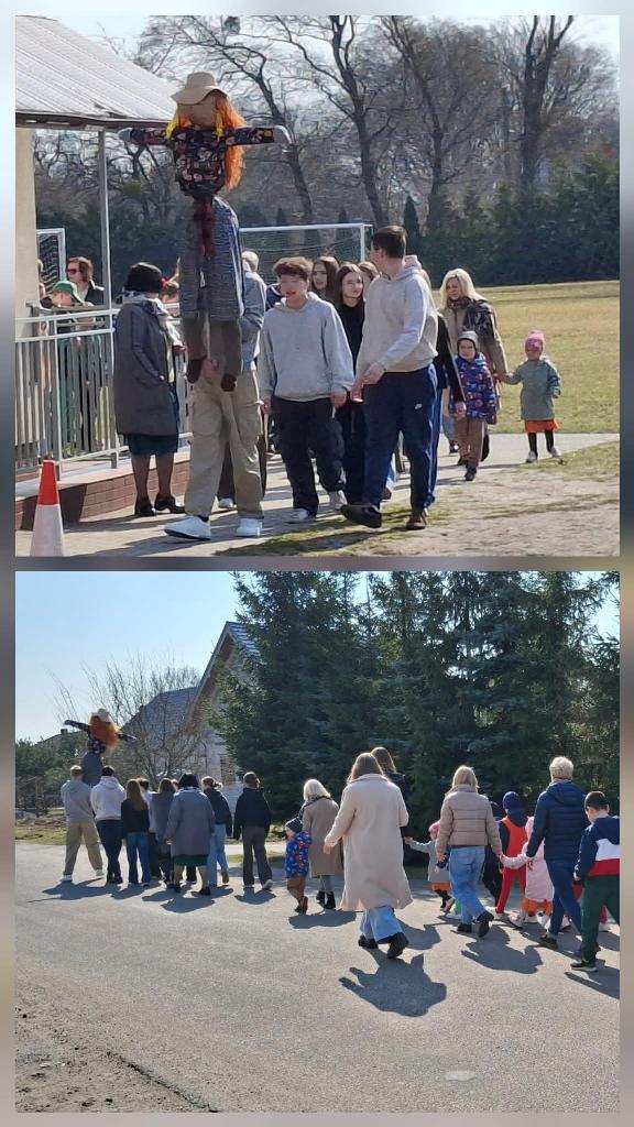 W tym roku powitanie wiosny odbyło się w iście artystycznym stylu- z muzyką, tańcem i kolorowymi dekoracjami, mającymi na celu pożegnanie zimy i przywołanie ciepłych dni. Najmłodsze dzieci z oddziałów przedszkolnych zaprezentowały się w piosence ,,Idzie wiosna". Ich kolorowe stroje prezentowały się wspaniale. Następnie uczniowie z koła aktorskiego zaprezentowały swój montaż slowno- myzyczny. Na zakończenie zobaczyliśmy ,,Taniec wiosny". Punktem kulminacyjnym dnia był uroczysty przemarsz z Marzanną. Barwny korowód przeszedł przez okolicę pożegnać zimę i powitać długo wyczekiwane ciepło.