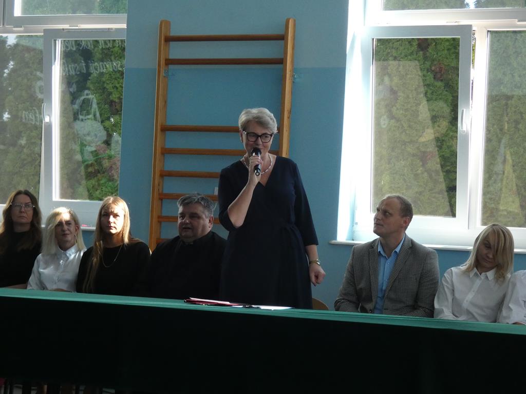 Dyrektor szkoły w swoim przemówieniu nawiązała do przewodniego hasła uroczystości i życzyła wszystkim, aby rozpoczynający się nowy rok szkolny był dla każdego pełen inspiracji i sukcesów.