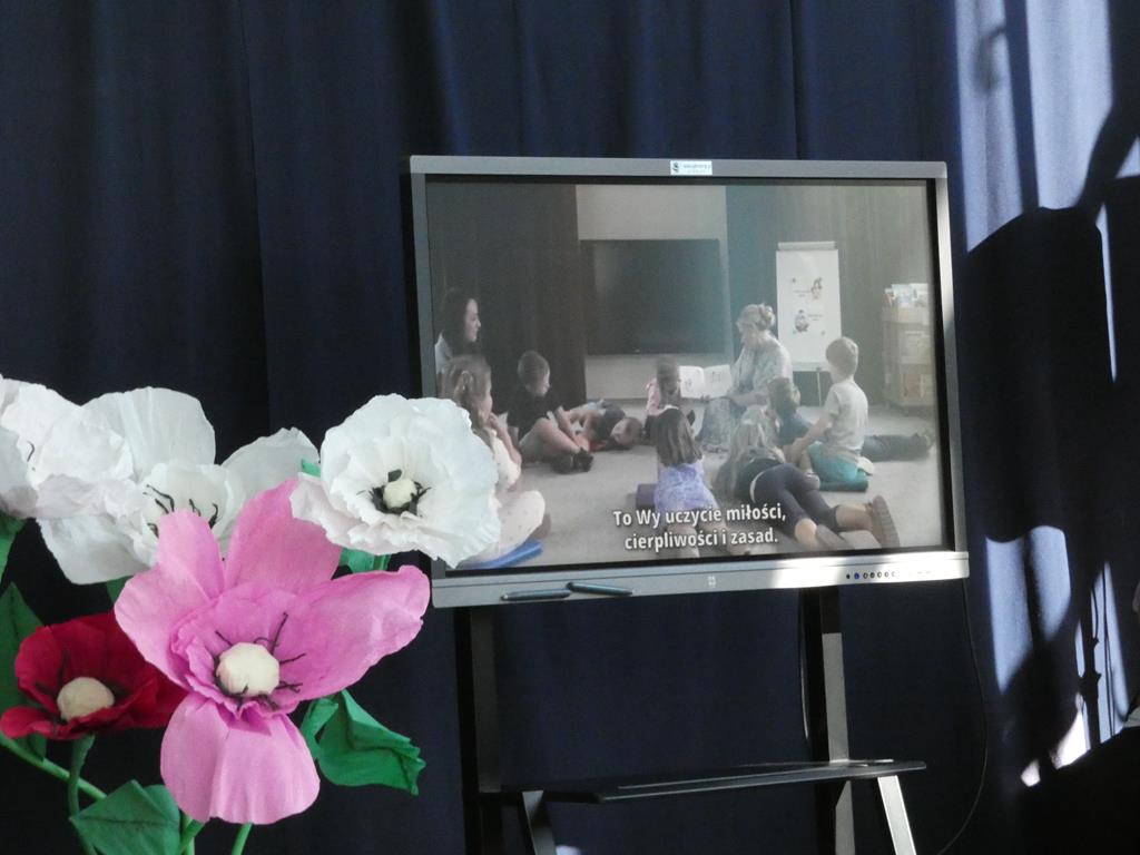 Zebrani obejrzeli przygotowany przez Kuratorium Oświaty w Poznaniu krótki film mówiący o tym, że edukacja to droga, którą podążają wspólnie: uczniowie, nauczyciele i rodzice.
