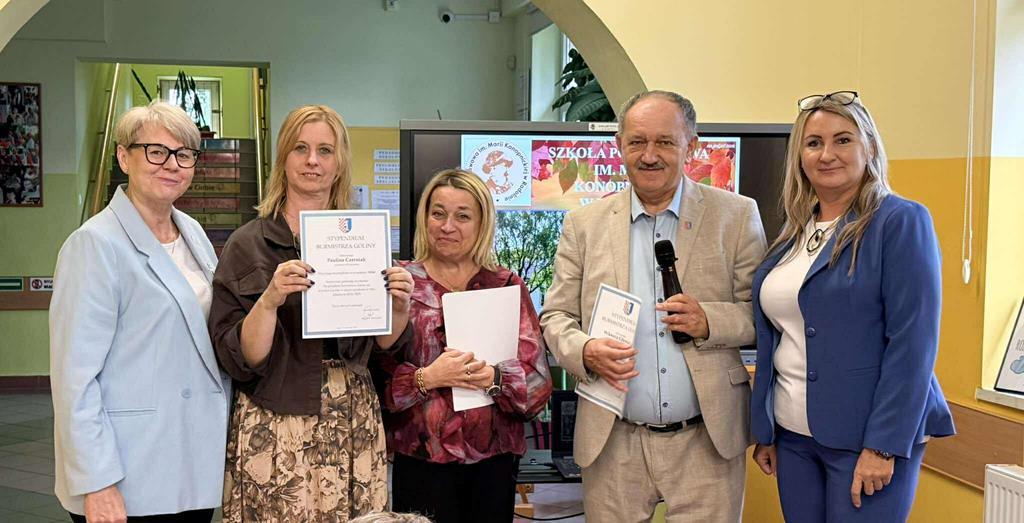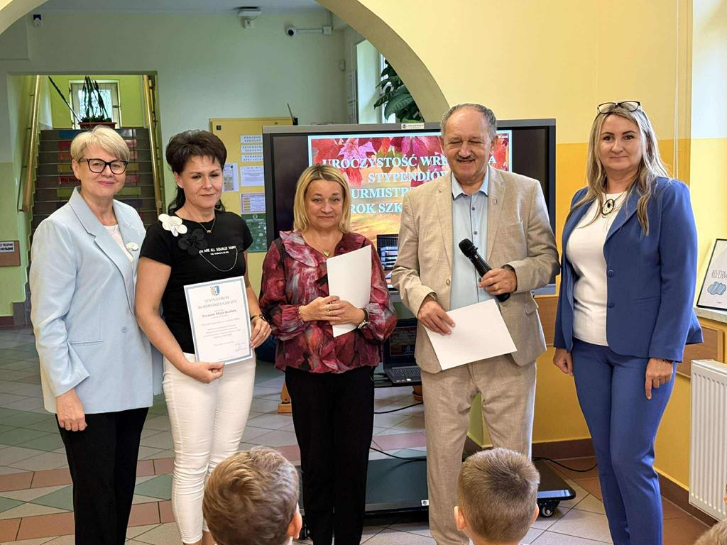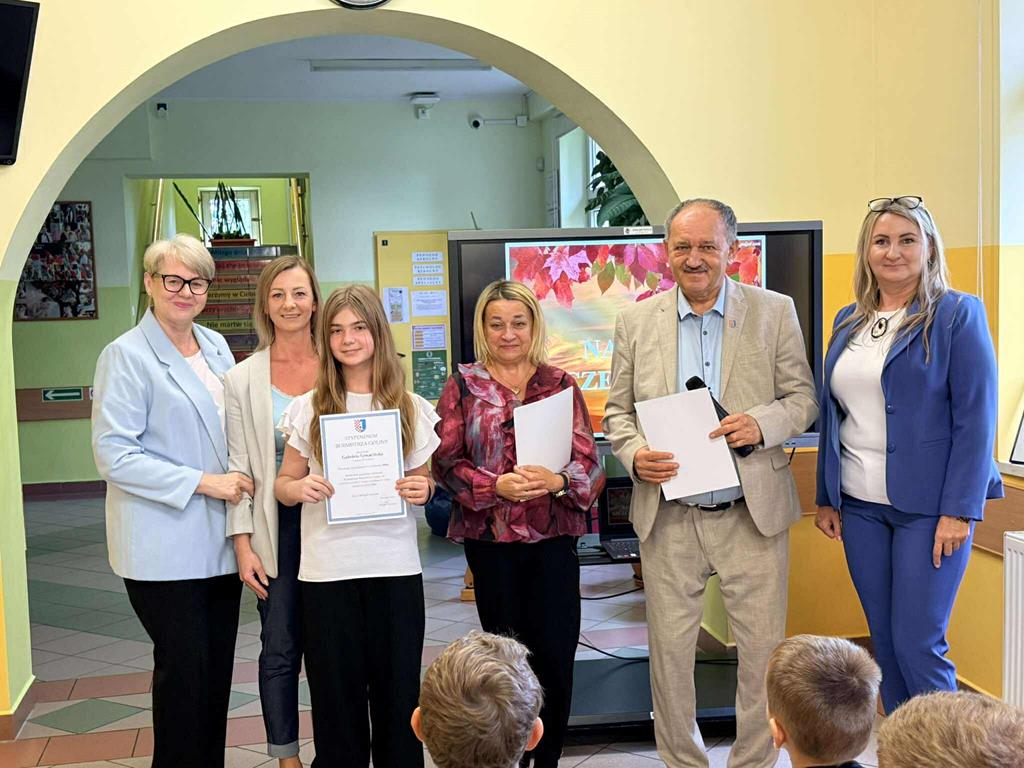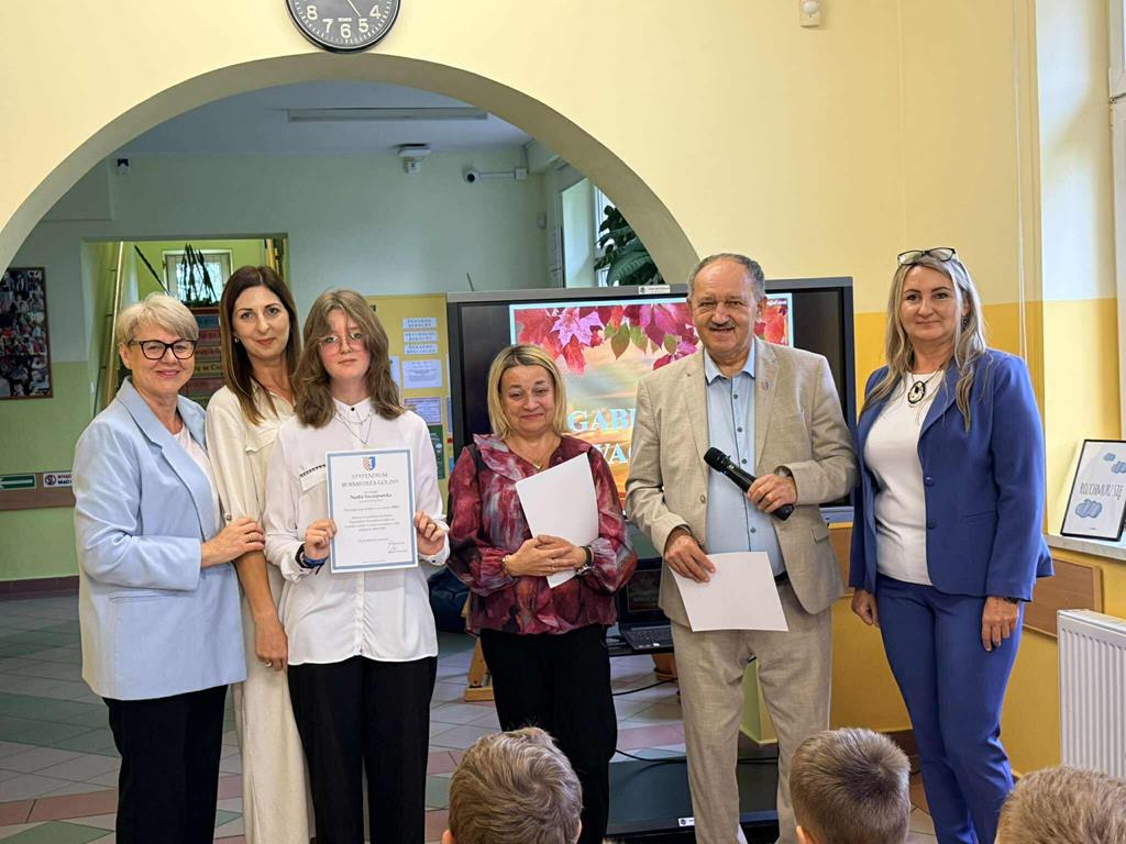 22 września 2025 r. Pan Mirosław Durczyński Burmistrz Goliny w towarzystwie Pani Urszuli Furmaniak – Przewodniczącej Rady Miejskiej w Golinie oraz Pani Emilii Bajdek – Kierownika Centrum Usług Wspólnych w Golinie wręczyli najzdolniejszym uczniom dyplomy potwierdzające przyznanie Stypendium Burmistrza Goliny za uzyskanie bardzo dobrych wyników w nauce oraz za zajęcie czołowych miejsc na zawodach sportowych i turniejach w roku szkolnym 2024/2025.
