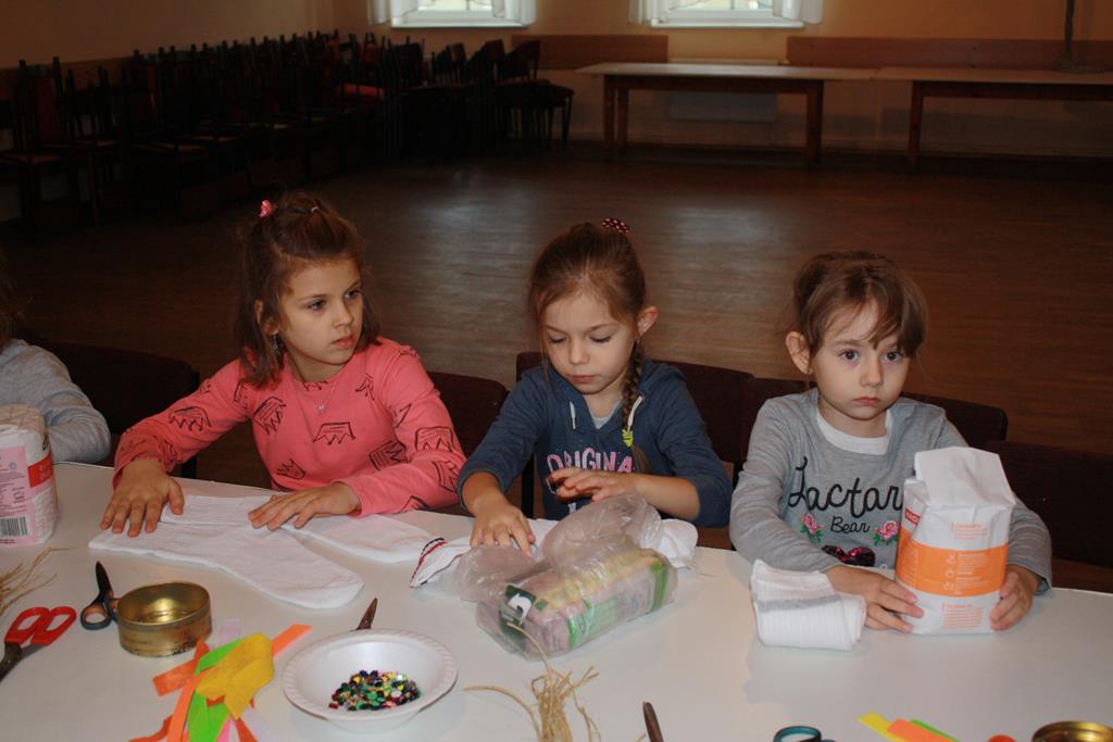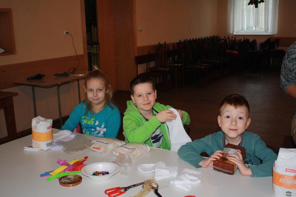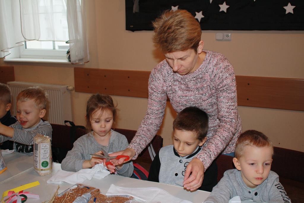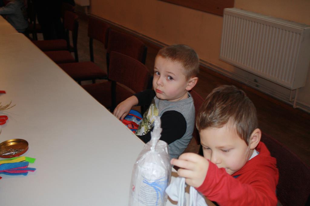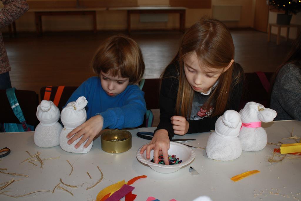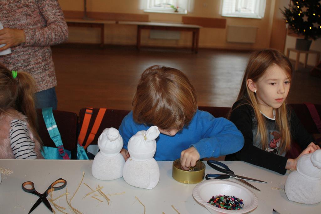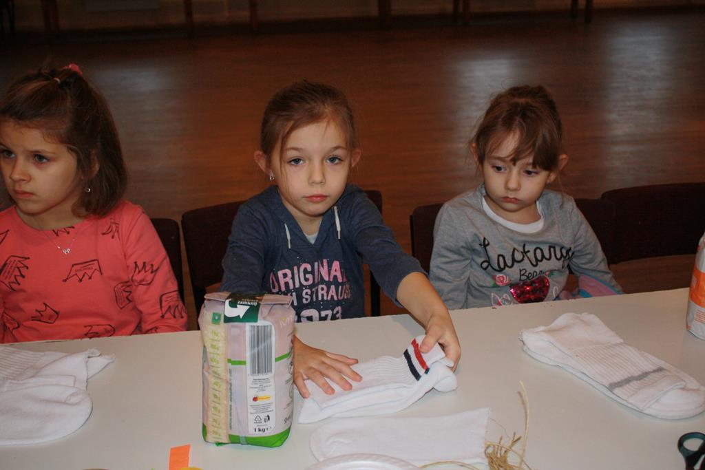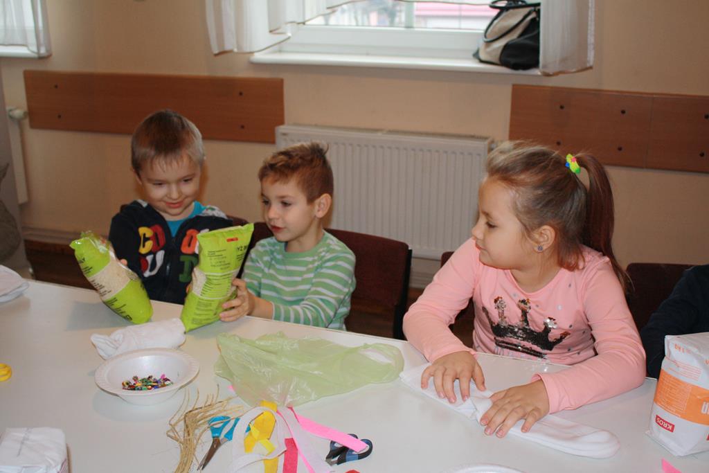 12 grudnia 2018 roku dzieci z oddziałów przedszkolnych wzięły udział w świątecznych warsztatach artystycznych, które odbyły się w Domu Kultury w Golinie. Przedszkolaki pod czułym okiem pani Edyty Jachnik wykonały śliczne bałwanki ze skarpet wypełnionych kaszą bądź ryżem. Do dekoracji użyły koralików, cekinów, szpilek oraz filcu. Poprzez działanie rozwijały swoją kreatywność, usprawniały sprawność manualną oraz uczyły się cierpliwości. Dzieci z zapałem i pomysłowością wykonały piękne bałwanki, które sprezentują swoim rodzicom z okazji Świąt Bożego Narodzenia.