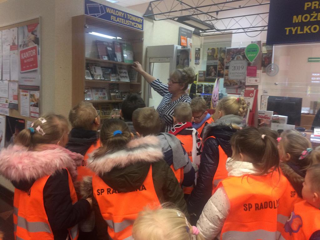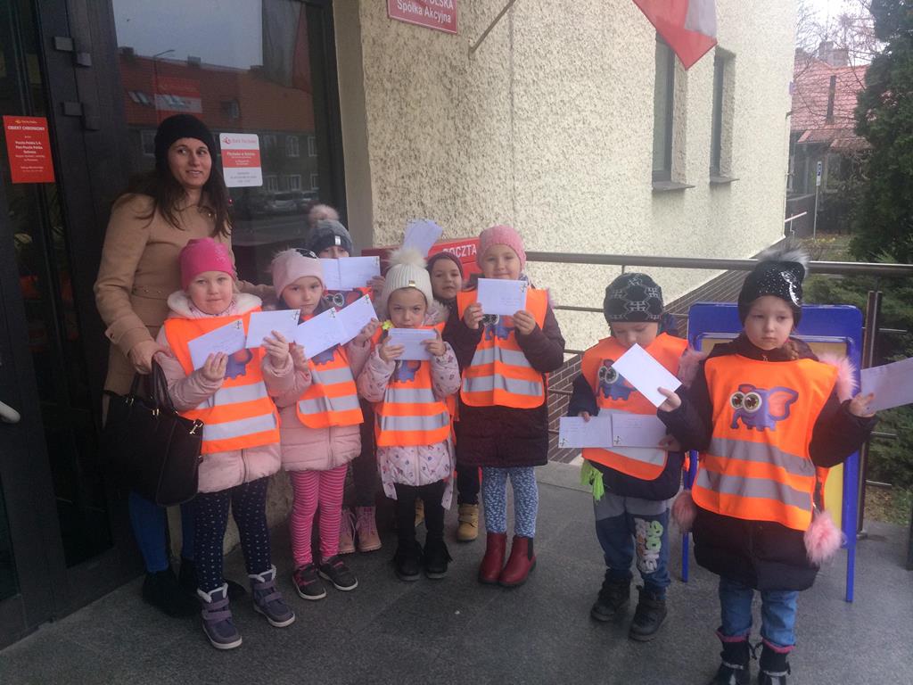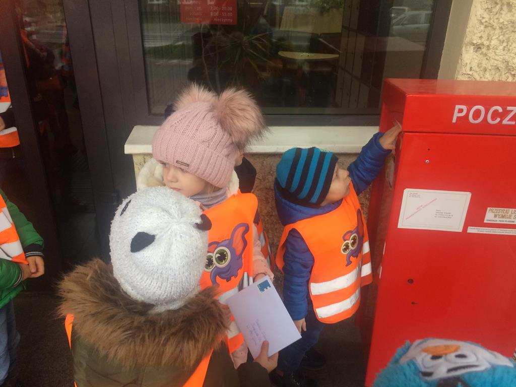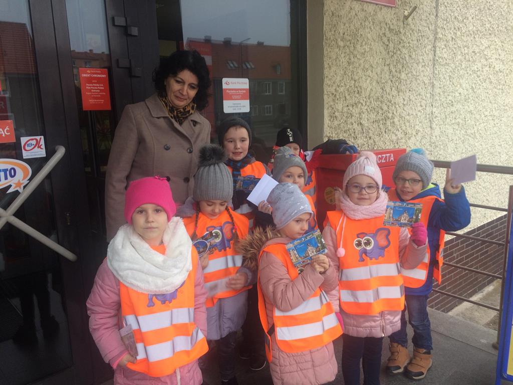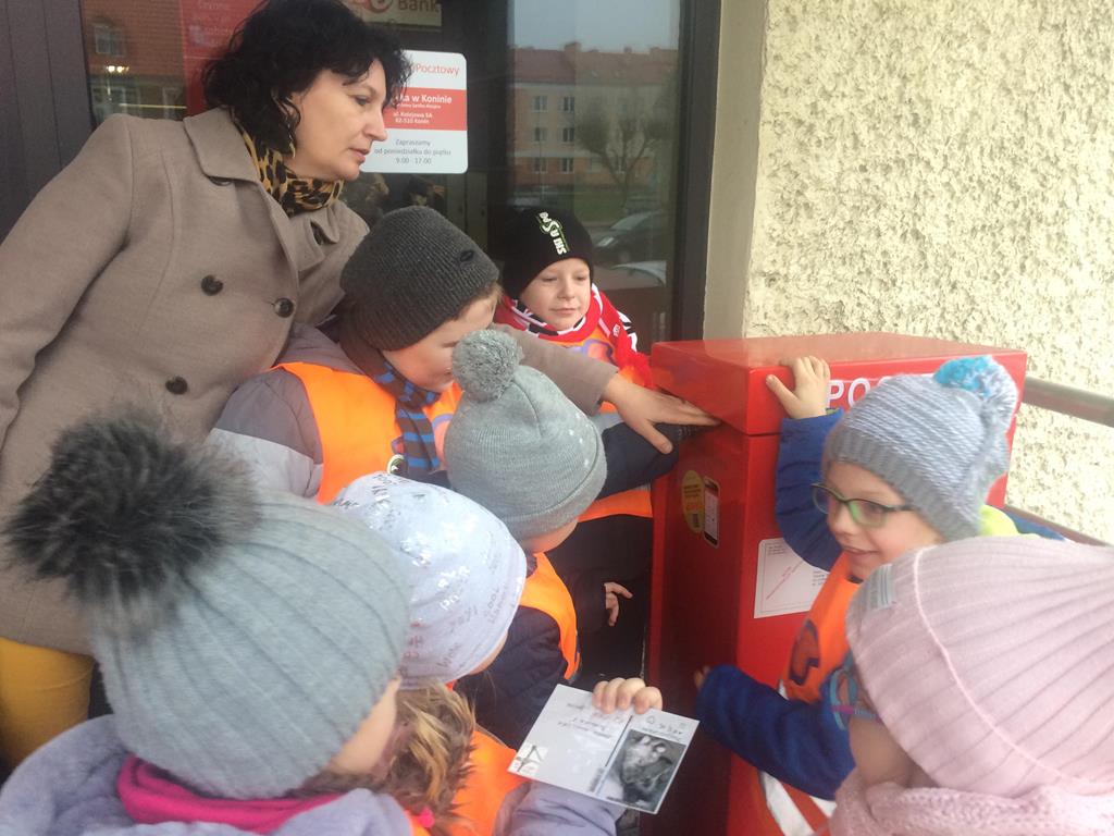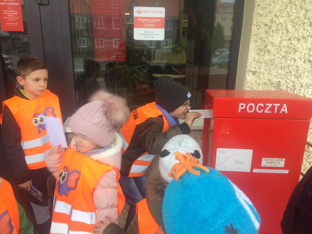 23 listopada 2018 roku dzieci z oddziałów przedszkolnych oraz uczniowie klas I-III wspólnie z wychowawcami odwiedziły Urząd Pocztowy w Koninie. Dowiedzieliśmy się tam, jak wygląda praca listonosza oraz innych osób pracujących na poczcie. Zwiedziliśmy poszczególne pomieszczenia, w których m.in. sortowane są listy i paczki. Każdy wcielił się przez chwilę w postać listonosza i doręczał list na odpowiednią półkę. Poznaliśmy również prawidłowy sposób wypełniania pocztówek oraz nadawania listów i paczek poleconych. Na koniec wysyłaliśmy pocztówki. Dzieci z zerówki wysłały listy i zdjęcia do innych przedszkoli wiejskich w ramach projektu wymiany pocztówkowej "Małe - wielkie przedszkola".