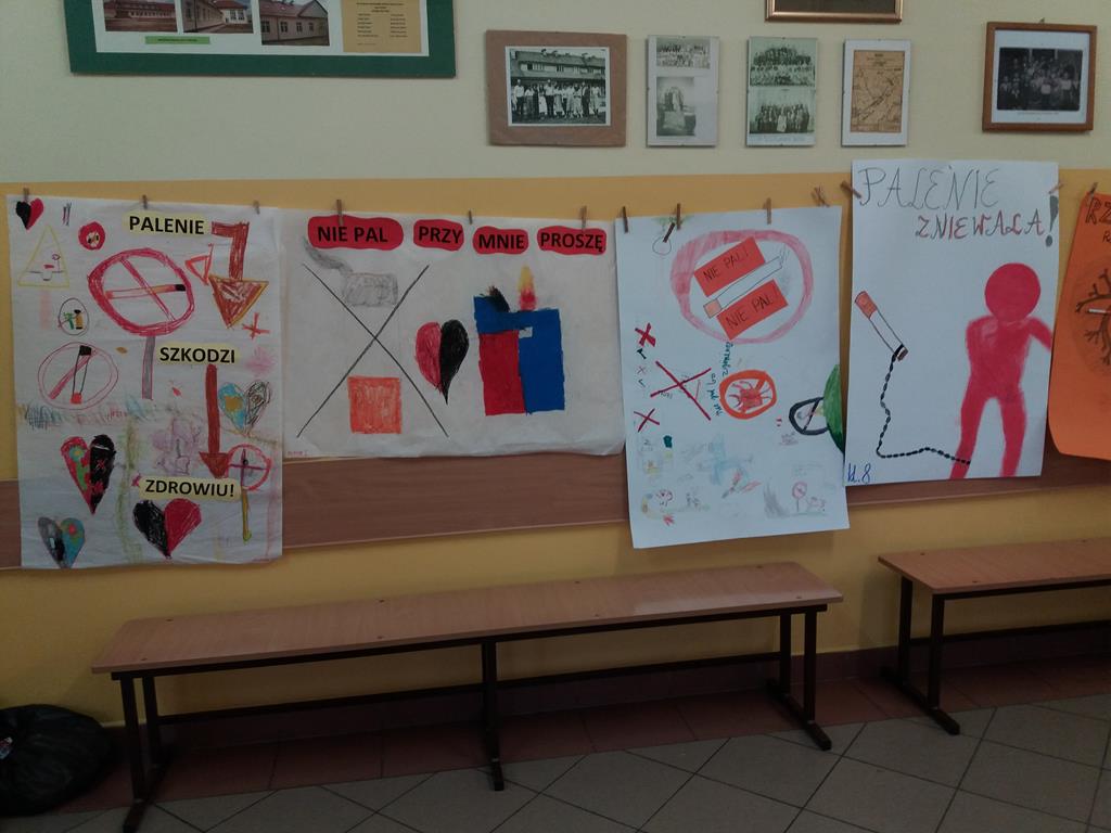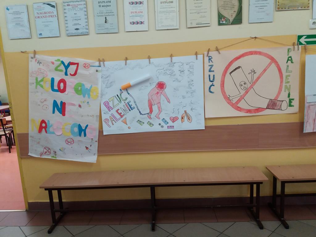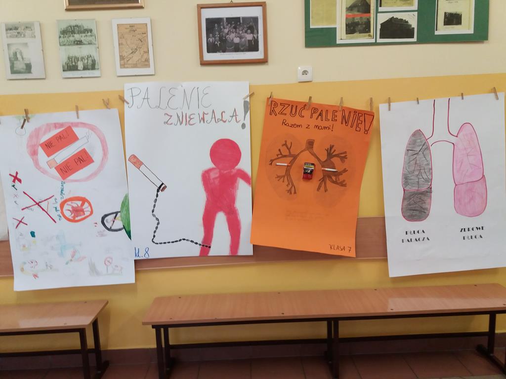 W naszej szkole została przeprowadzona akcja, której celem było promowanie zdrowia, skuteczne przekonywanie młodzieży do życia bez nałogów, bez papierosów oraz do życia w czystym, pozbawionym dymu tytoniowego powietrzu. Uczniowie wysłuchali pogadanek, a także przygotowywali plakaty zachęcające do rzucania palenia i uświadamiające jak wielkim zagrożeniem dla organizmu są papierosy.