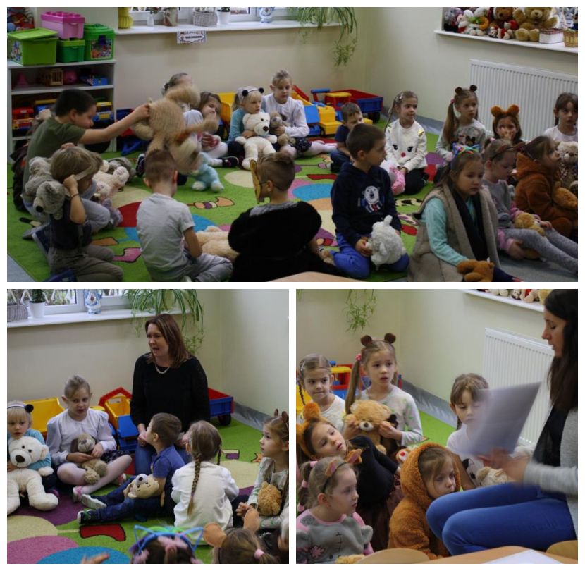 W dniu 26 listopada wszystkie dzieci z oddziału przedszkolnego oraz zerówki uroczyście obchodziły Światowy Dzień Pluszowego Misia. W naszym przedszkolu obchodzenie tego święta to już tradycja. Tego dnia dzieci przyszły do przedszkola ze swoimi ulubionymi i kochanymi pluszakami. Dzieci, opowiadały o swoich maskotkach, słuchały czytanych przez panie wierszy o niedźwiadkach, nauczyły się krótkiej rymowank o misiu, odgadywały zagadki związane z misiami, bawiły się w starego niedźwiedzia oraz tańczyły z misiami w rytm piosenki „Misio mniam mniam”. Ten dzień wywołał u dzieci wiele uśmiechów i radości. Ciekawą atrakcją była też wcześniej przygotowana fotobudka misiowa, w której dzieci mogły zrobić sobie zdjęcie.