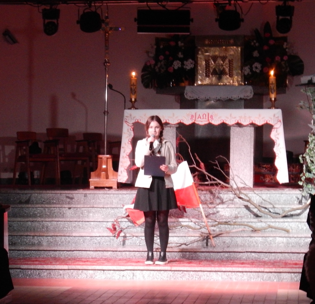 Podczas wieczornicy uczniowie zaprezentowali widzom lekcję historii i patriotyzmu. W roli prowadzących uroczystość wystąpili Alicja Czerniak i Marek Pacanowski. Przypomnieli oni najważniejsze wydarzenia z dziejów zniewolonej Ojczyzny oraz bohaterstwo wszystkich tych, którzy walczyli o wolność naszego kraju. Uczniowie szukali odpowiedzi na pytania: co to znaczy być Polakiem i mieć obowiązki wobec własnego narodu oraz jak traktować wolność, która jest naszym darem. Uczniowie recytowali wiersze oraz śpiewali pieśni patriotyczne. Na koniec wielu wzruszeń dostarczył taniec – polonez w wykonaniu przedszkolaków, przygotowanych przez panie: Martę Siodę i Emilię Napierałę przy współudziale pana Michała Witkowskiego. Dopełnieniem całości była prezentacja multimedialna przygotowana przez panią Barbarę Jarońską. Nad całością części artystycznej czuwały panie: dyr. Alina Kozłowska Karolina Kulczak i Ewa Wróbel. Uroczystość uświęcił Chór „Wokaliza” z Goliny śpiewając pieśni patriotyczne.