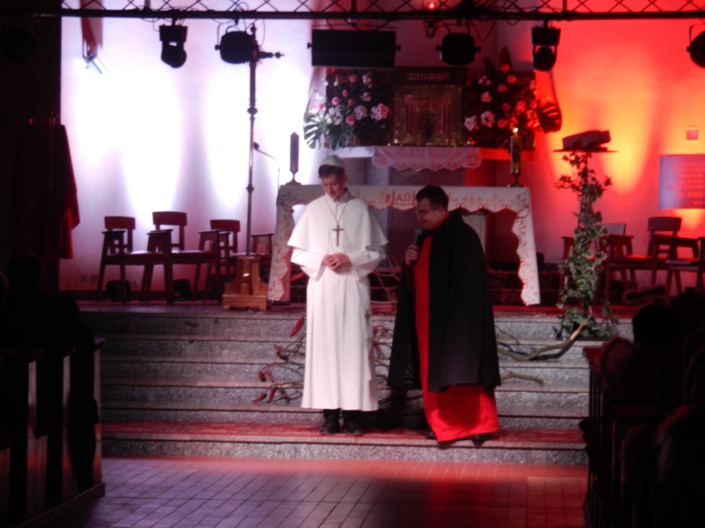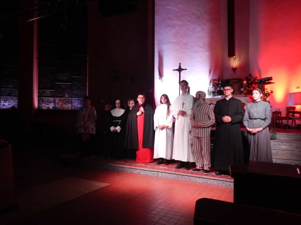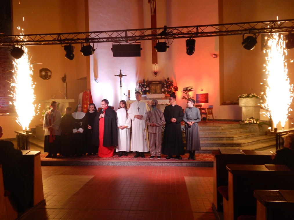 Z czasów komunizmu wywołana została postać bł. Ks. Jerzego Popiełuszki. Którego zaprezentowała parafia św. Mateusza Apostoła z Myśliborza. Ksiądz Jerzy sam zawsze mówił, że „ najcenniejsze co może ofiarować Polsce, to Msza Święta”. Dlatego jeździł po całej Polsce i głosił Słowo Boże, co nie podobało się ówczesnym władzom komunistycznym. Ksiądz Popiełuszko został zamordowany przez SB i ta właśnie scena została zaprezentowana zgromadzonym w kościele.