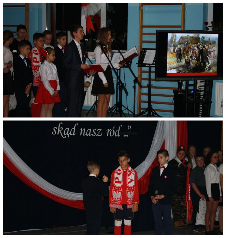 W piątek, 9 listopada o godz. 11.11 odbyło się wspólne śpiewanie hymnu Polski – włączenie się do bicia rekordu przez Radę Dzieci przy Ministrze Edukacji Narodowej. Na koniec pani dyrektor Alina Kozłowska podziękowała wszystkim uczniom, którzy występowali w uroczystej wieczornicy oraz brali udział w gminnych konkursach dotyczących tematyki patriotycznej, jak również w wojewódzkich konkursach przedmiotowych.