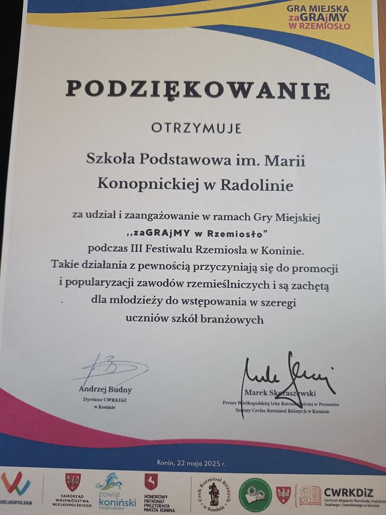 Miło nam poinformować, że podczas III Festiwalu Rzemiosła z uczestniczących w grze 10 drużyn, dwie drużyny z naszej szkoły znalazły się na podium: