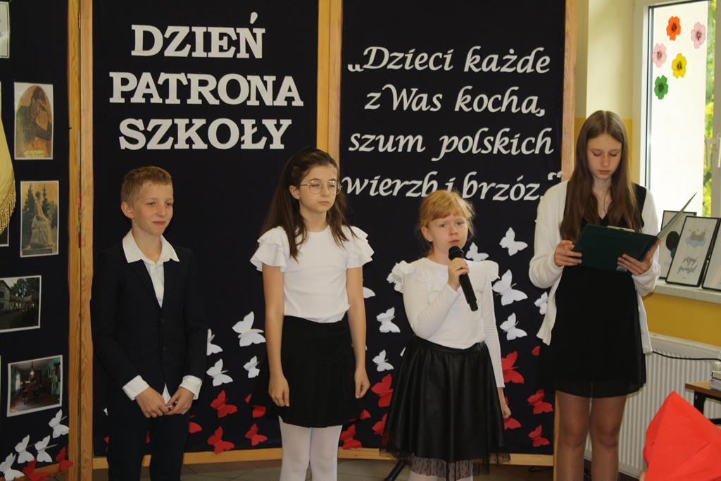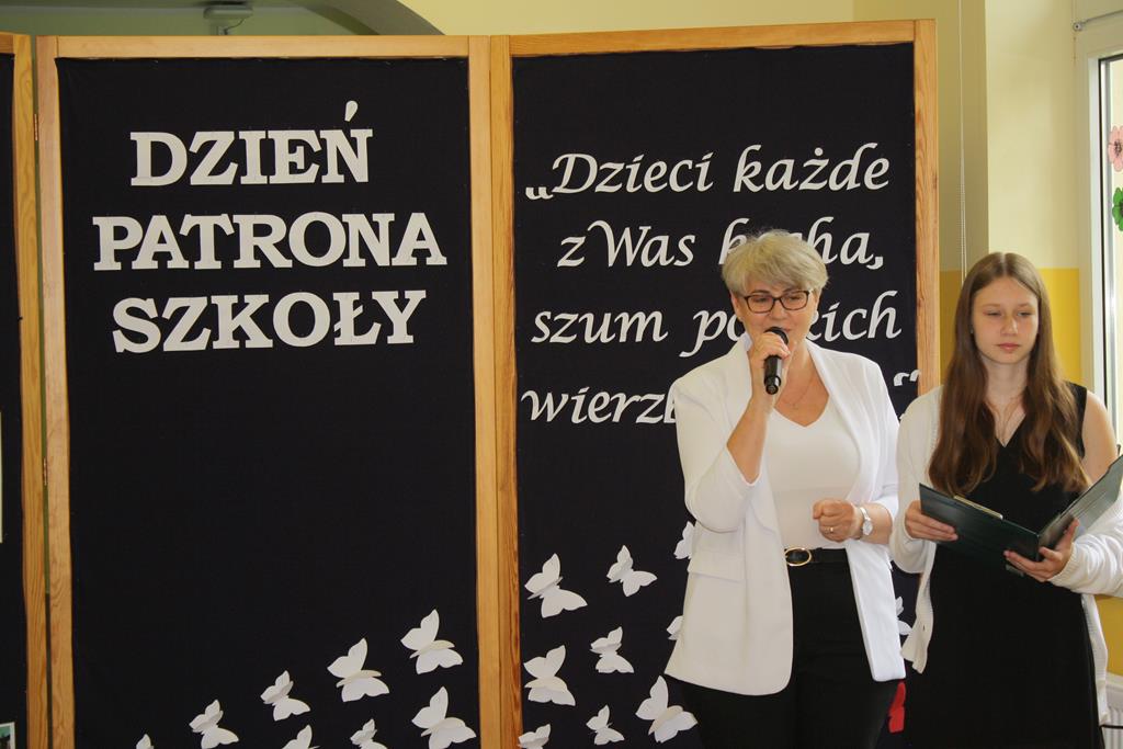 W swoim wystąpieniu Pani Dyrektor Alina Kozłowska zwróciła uwagę na przypadającą w tym roku ważną dla naszej szkoły rocznicę, czyli 15-lecie nadania szkole imienia Marii Konopnickiej oraz na ponadczasowe wartości płynące z utworów poetki.