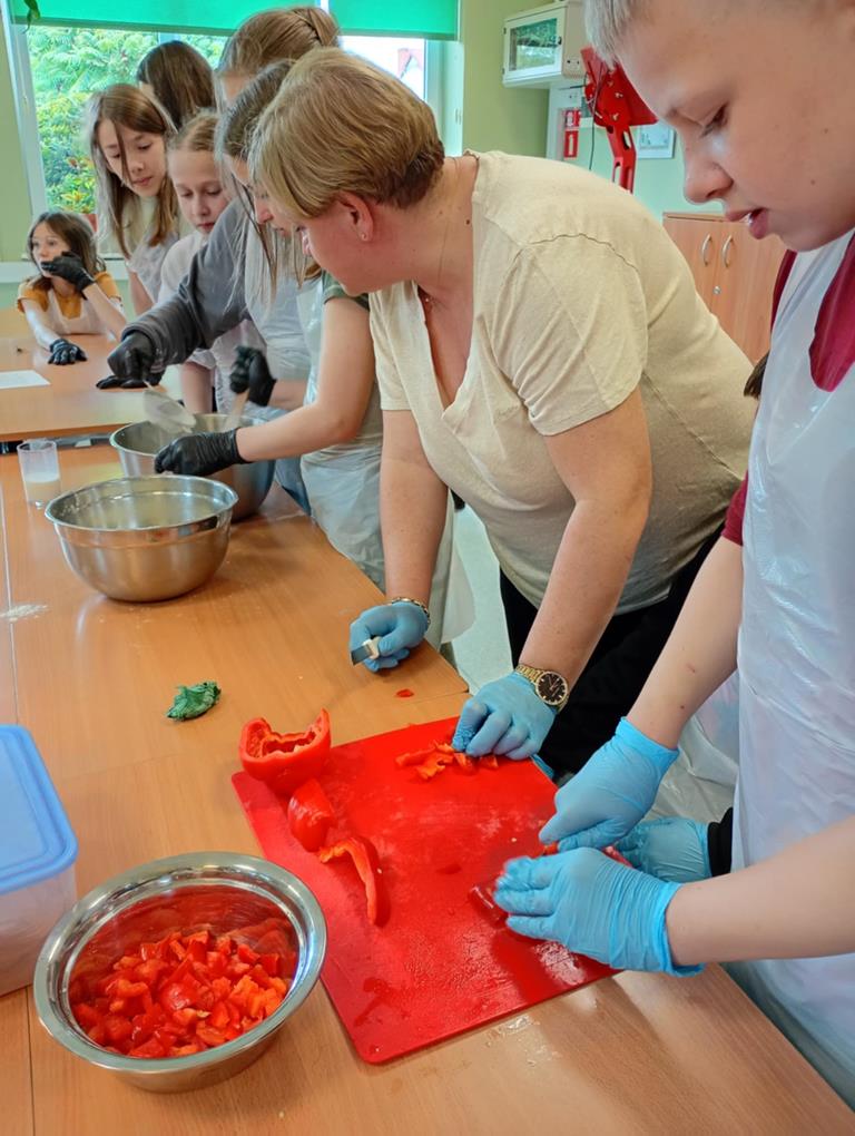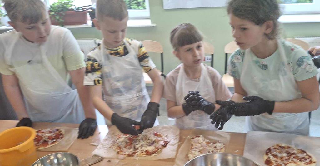 Uczniowie, pod okiem pań z Banku Żywności: pani Joanny Piekarczyk i pani Bożeny Palpuchowskiej przygotowywali pizzerki z wykorzystaniem podstawowych produktów spożywczych. Celem warsztatów było pokazanie, że nawet z prostych składników można przygotować smaczny i pożywny posiłek.