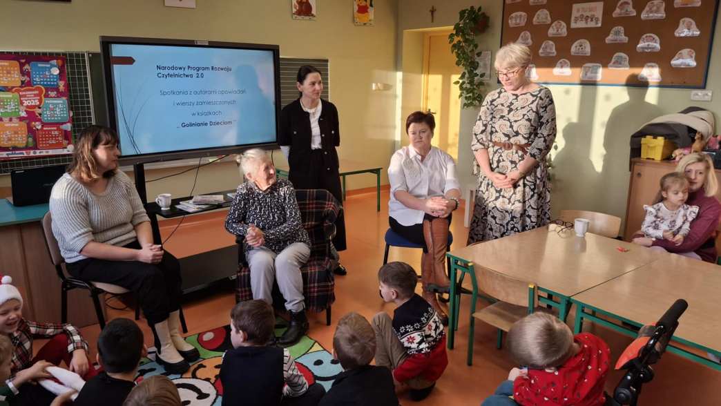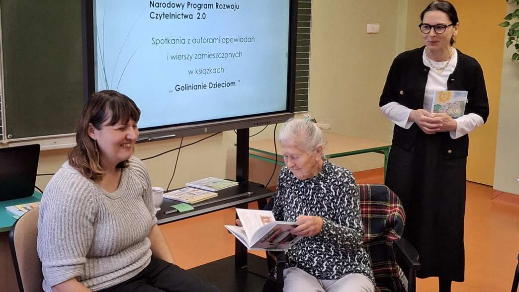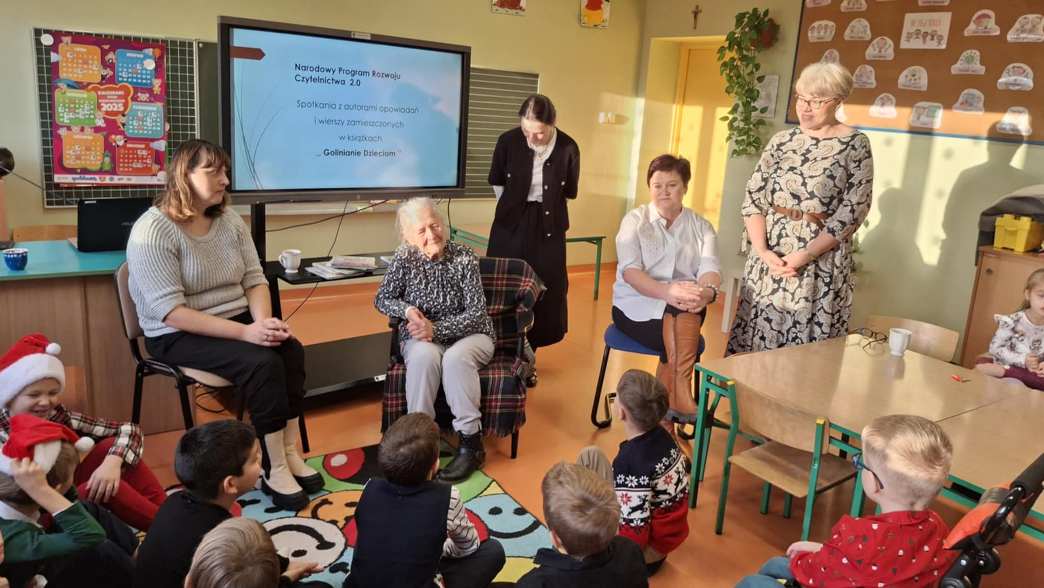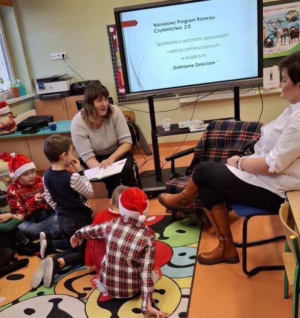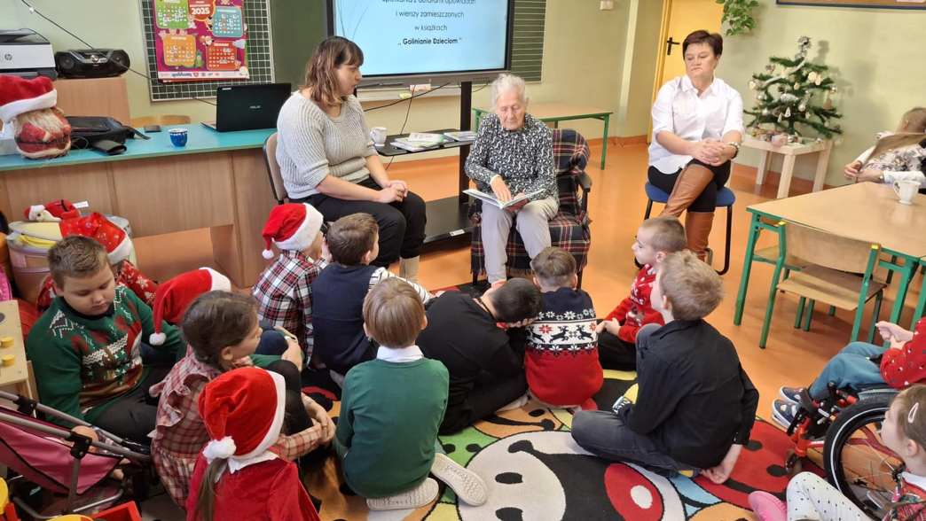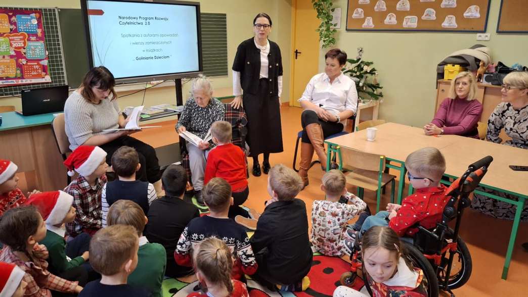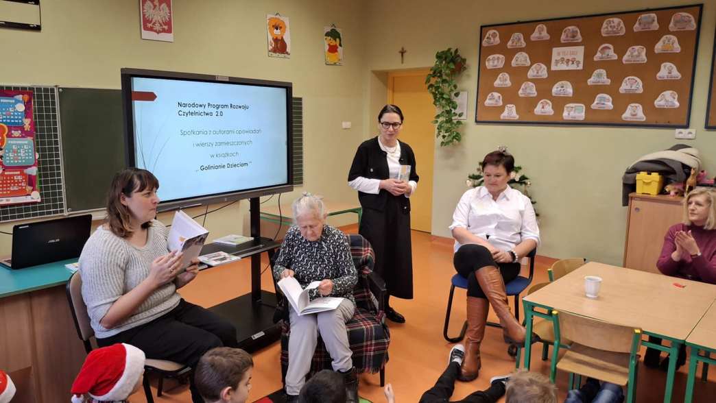 W dniu 13 grudnia uczniowie klas I- III i dzieci z grup przedszkolnych mieli okazję posłuchać utworów zamieszczonych w książce wydawanej corocznie ,, Golinianie dzieciom ”. Wszyscy obecni z zainteresowaniem wysłuchali tekstów w interpretacji pani Zofii Szoty – emerytowanej dyrektor szkoły , Karoliny Kasprzak – bibliotekarki w Bibliotece Publicznej w Golinie oraz Małgorzaty Krysińskiej – wiceprezes Wielkopolskiego Stowarzyszenia NASZA RADOLINA i absolwentki szkoły.