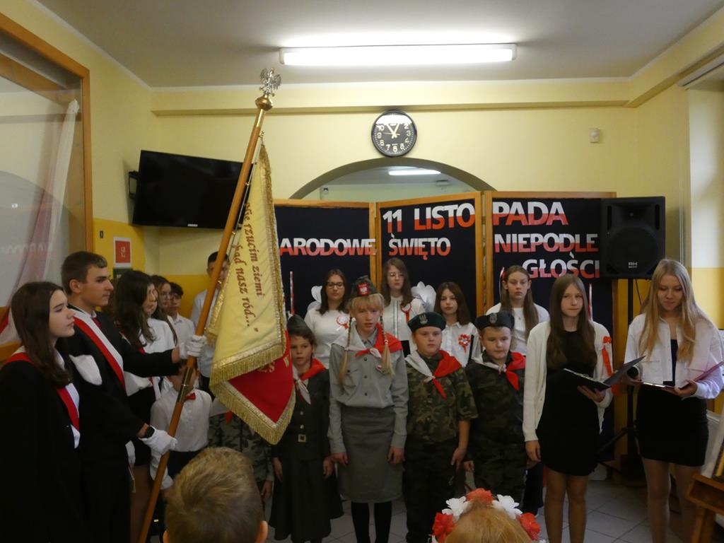 11 listopada poczet sztandarowy naszej szkoły wziął również udział w gminnych obchodach tego święta.