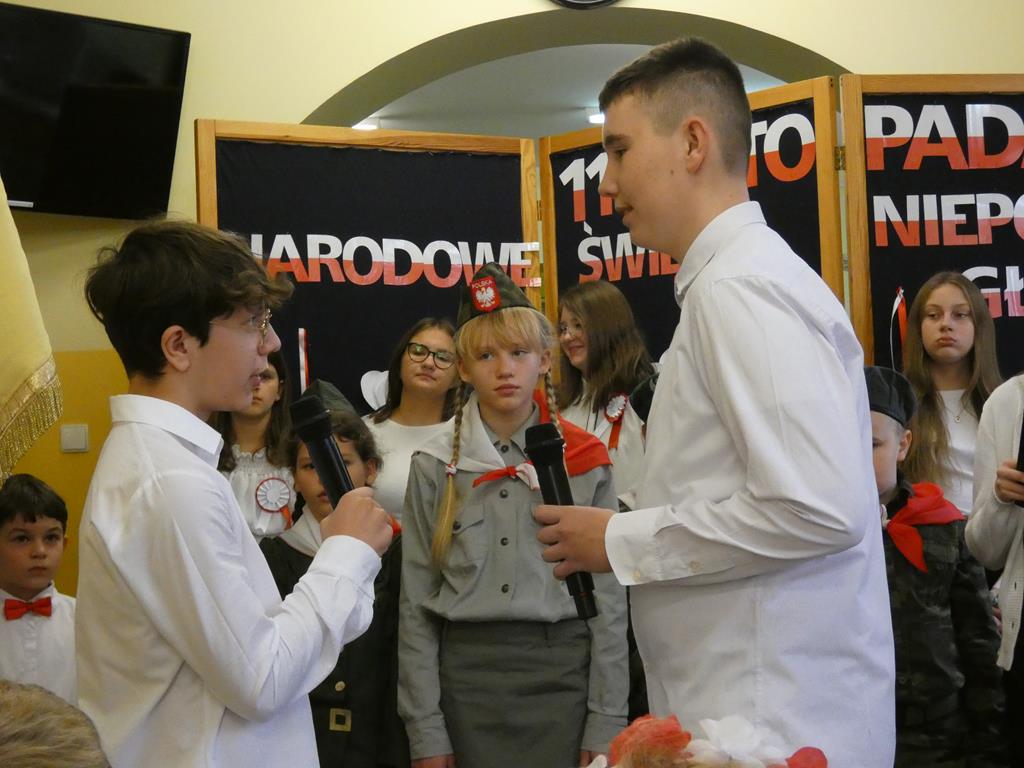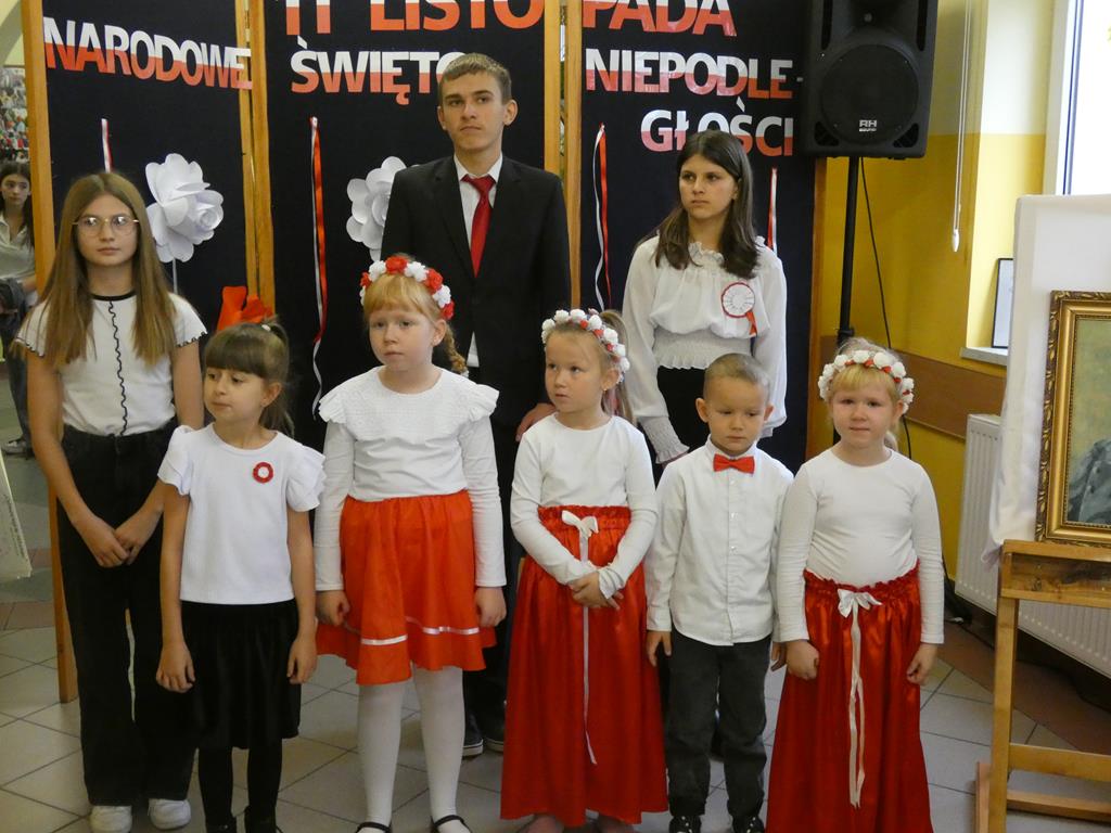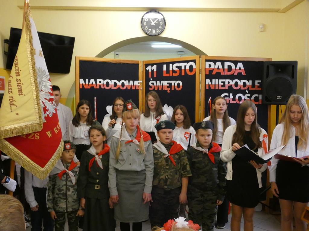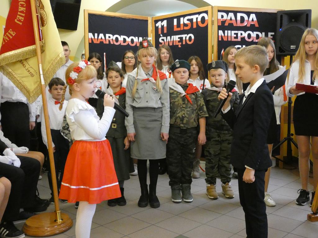 W piątek 8 listopada społeczność szkolna uczciła Narodowe Święto Niepodległości. W 106. rocznicę tego wydarzenia uczniowie klas starszych i młodszych oraz przedszkolacy wystąpili w uroczystym apelu ku czci Niepodległej.