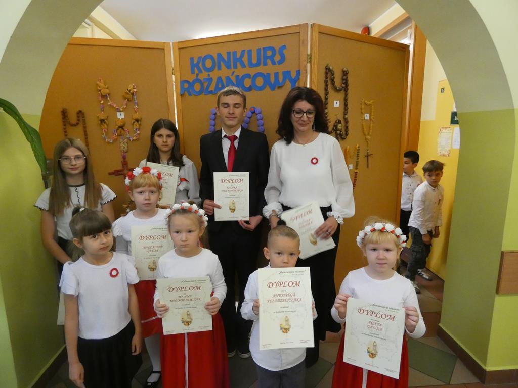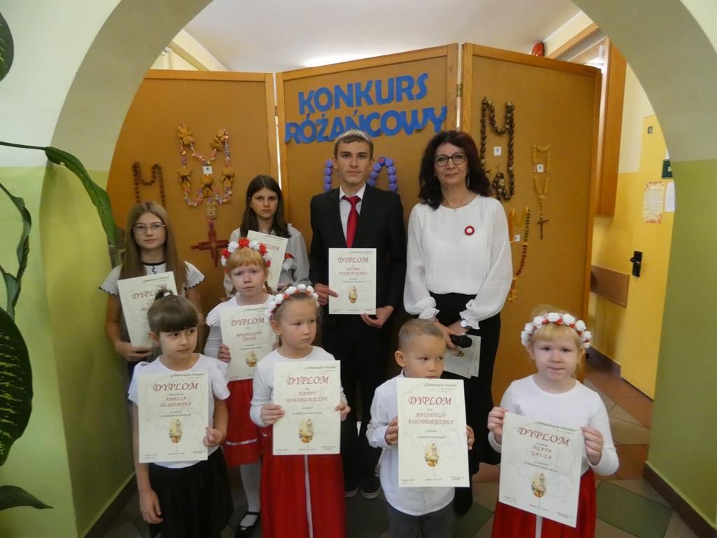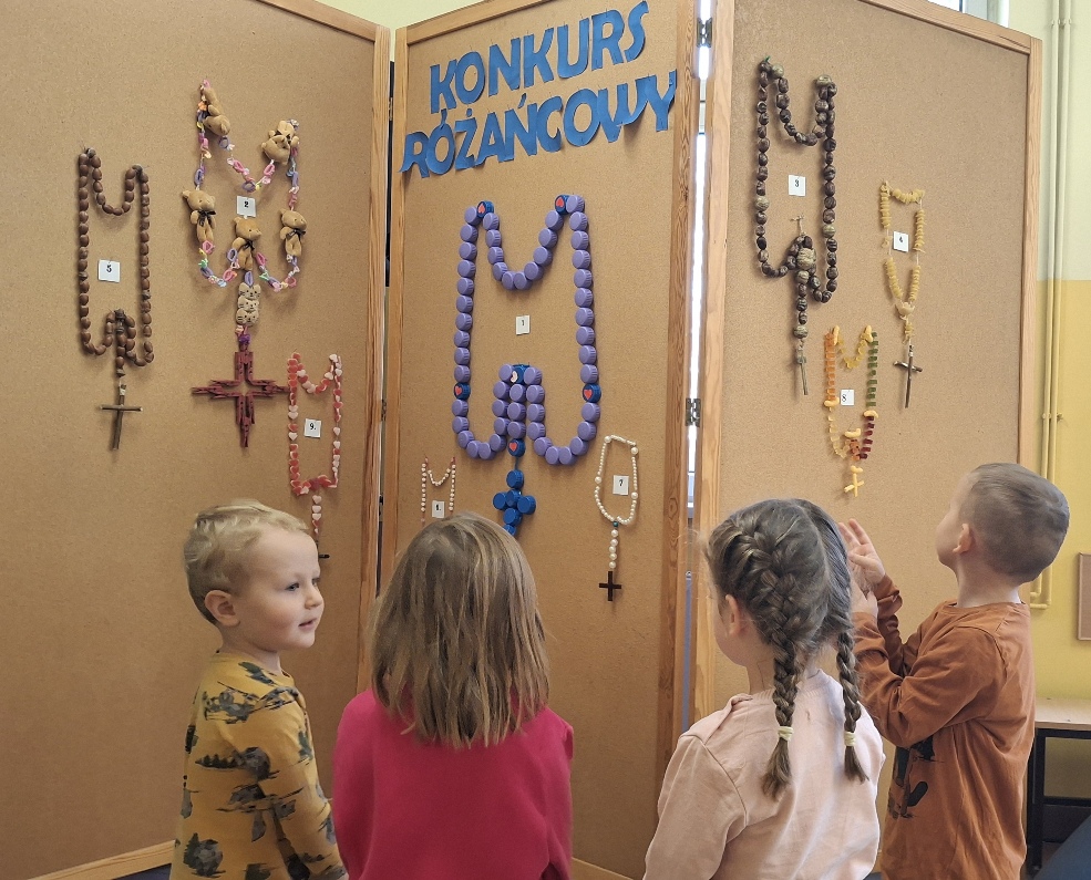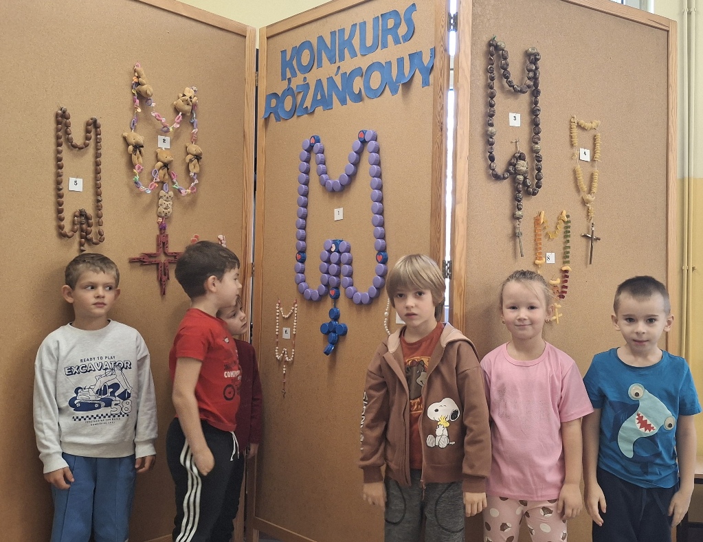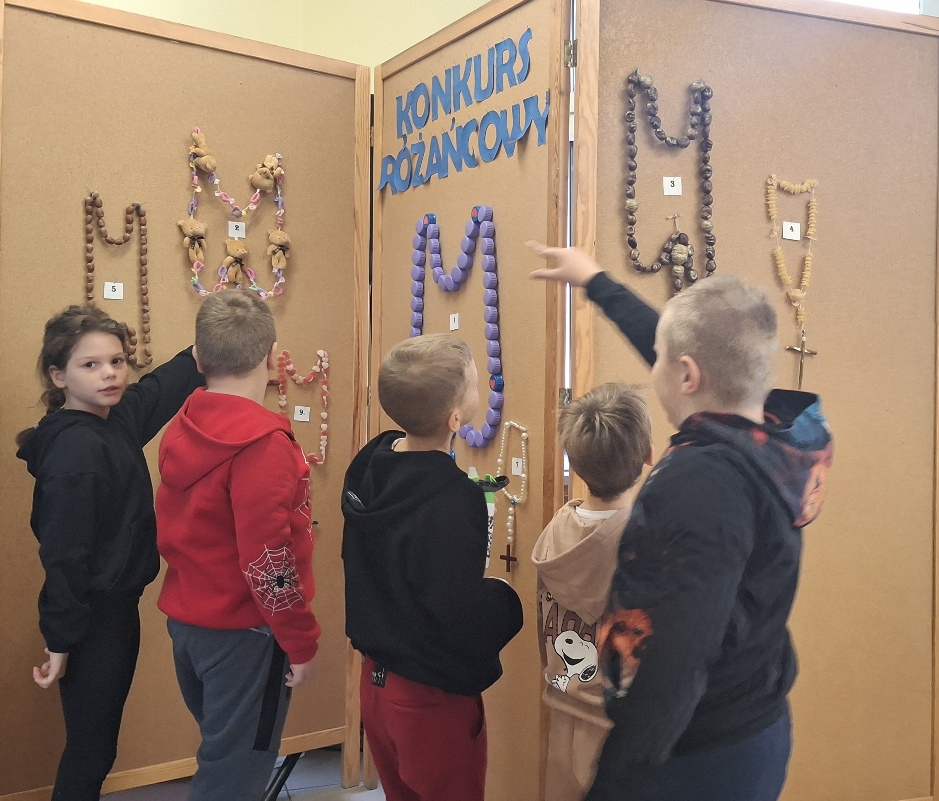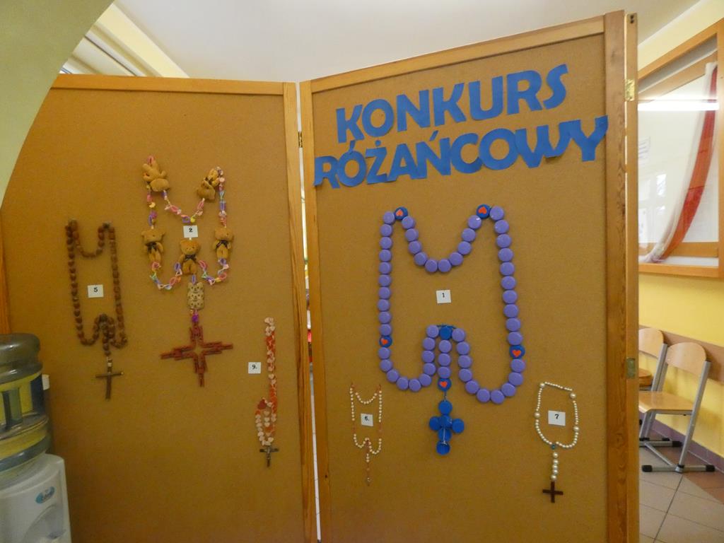 Jak co roku w październiku trwał w naszej szkole konkurs różańcowy, w którym mógł wziąć udział każdy, kto miał pomysł, aby zaprezentować swoje artystyczne zdolności. Zadanie polegało na wykonaniu dowolną techniką, indywidualnie lub rodzinnie różańca z najróżniejszych materiałów. Do konkursu swoje prace zgłosiło 9 uczestników: