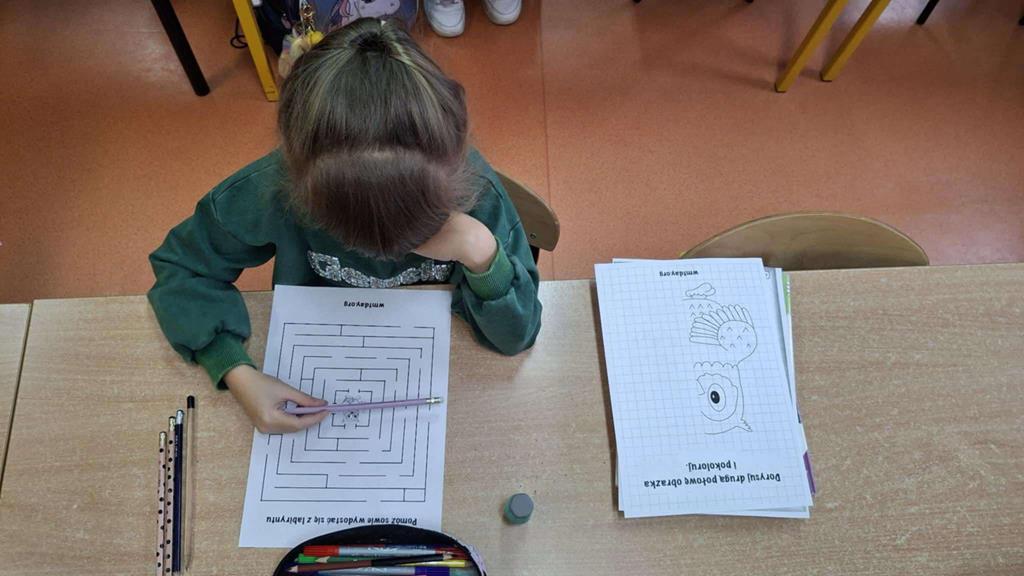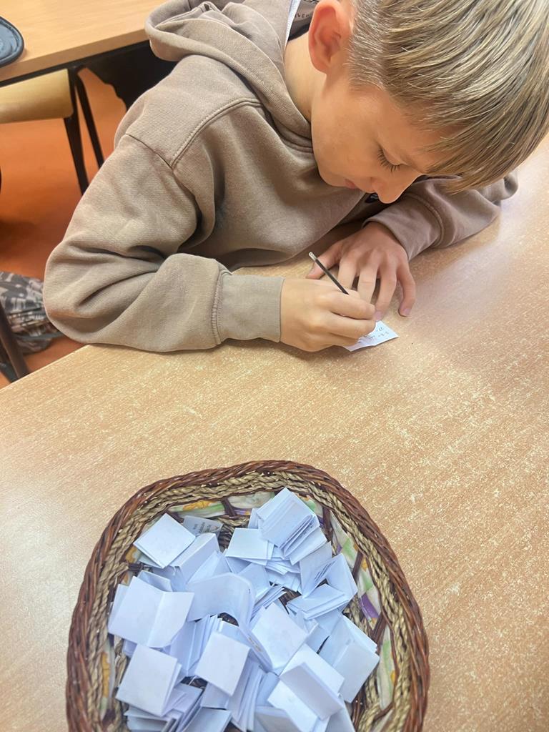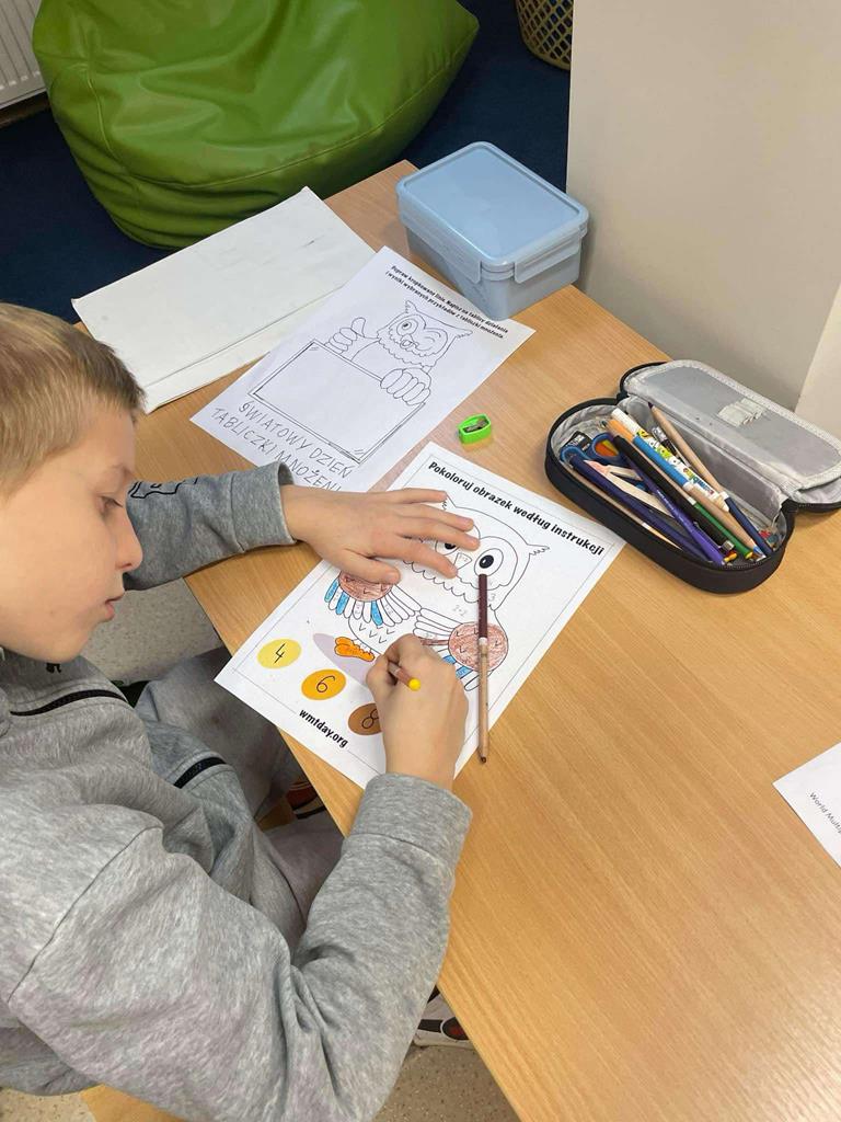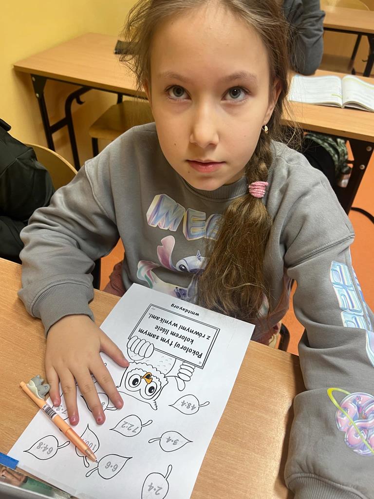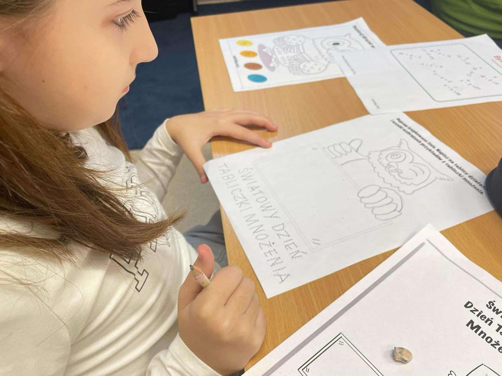Uczniowie klas młodszych rozwiązywali i kolorowali „tabliczkowe łamigłówki” pod opieką swoich wychowawców. Uczniowie klasy ósmej przygotowali plakat informujący o akcji. Wszyscy się świetnie bawili.
