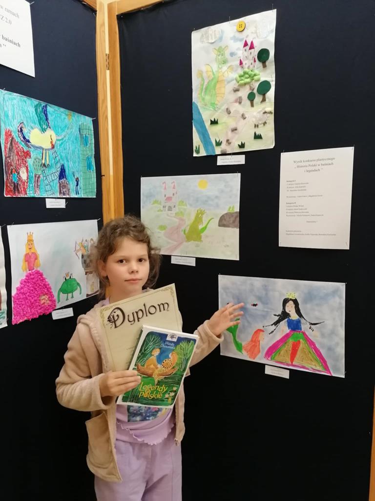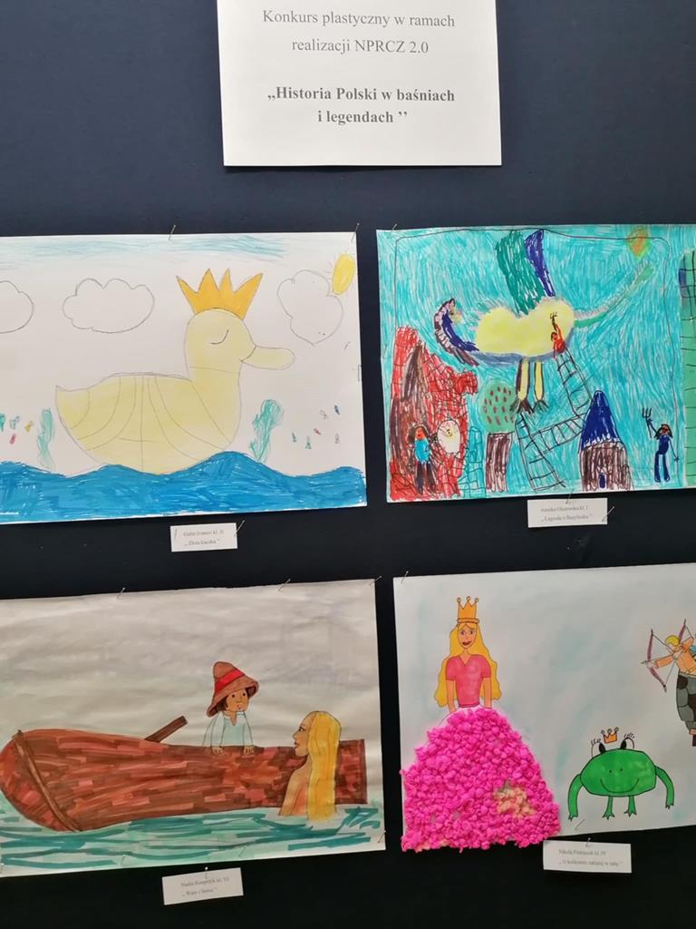 ,,Historia Polski w baśniach i legendach’’ to temat konkursu plastycznego zorganizowanego przez bibliotekę szkolną. Celem konkursu było pobudzanie kreatywności i wyobraźni dzieci, zachęcanie do rozwoju twórczego dzieci oraz upowszechnienie i poszerzanie zainteresowań literaturą polską wśród uczniów.