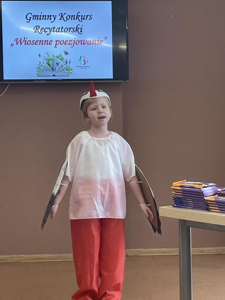 Dnia 22 maja cztery uczennice naszej szkoły wzięły udział w XV edycji Gminnego Konkursu Recytatorskiego zorganizowanego przez Szkołę Podstawową im. Stanisława Wyspiańskiego w Kawnicach. Jury konkursowe, dokonując oceny recytacji poszczególnych uczestników, wzięło pod uwagę: zgodność recytowanego tekstu z oryginałem, dykcję, akcent wyrazowy, interpretację tekstu oraz ogólny wyraz artystyczny.