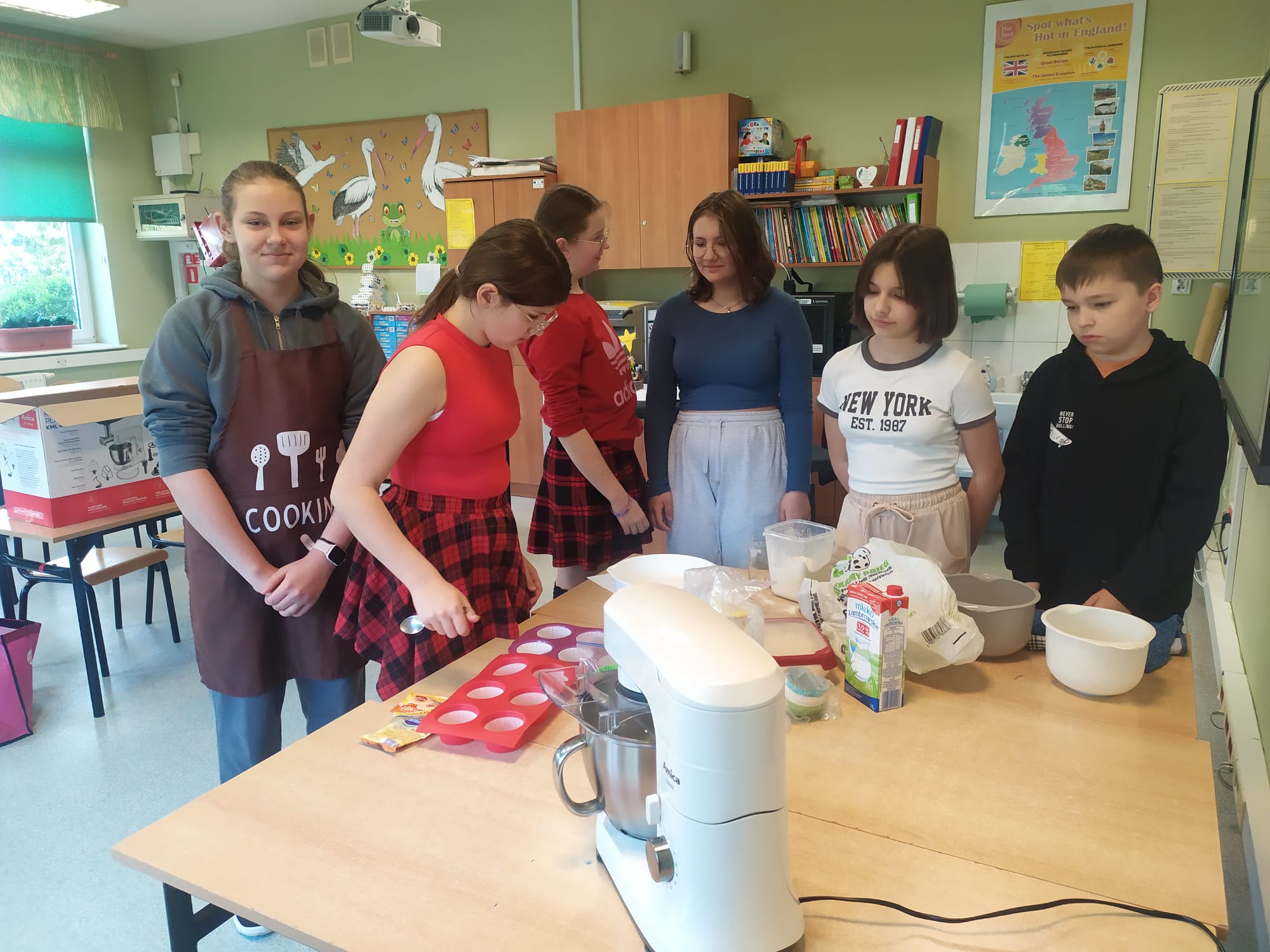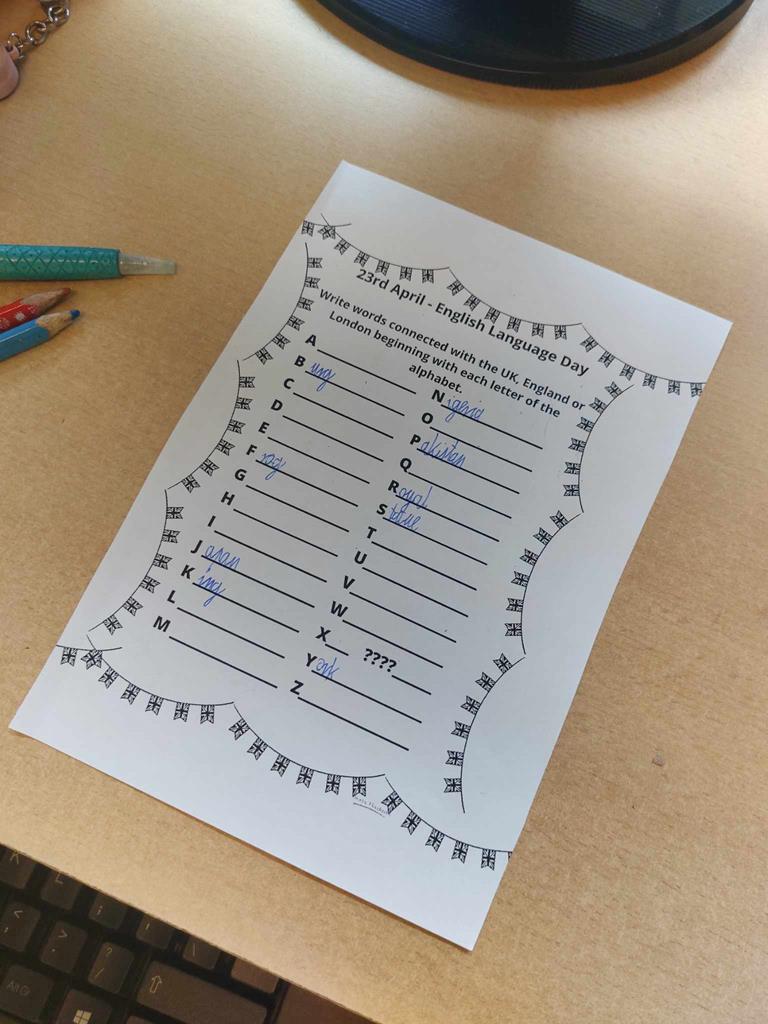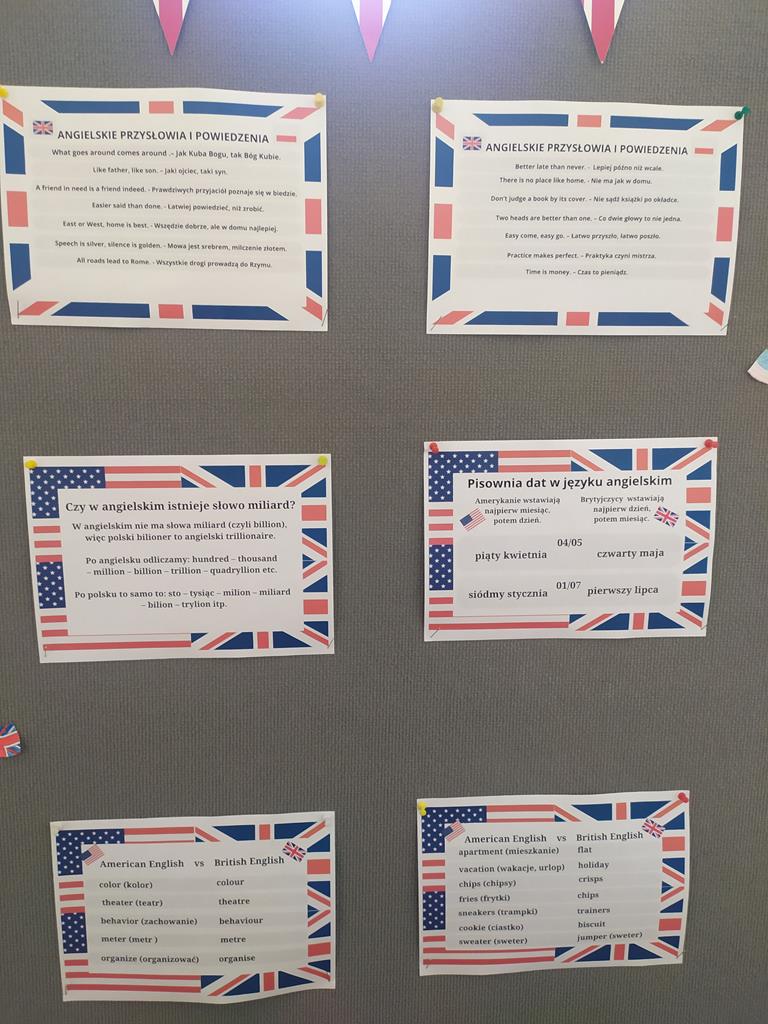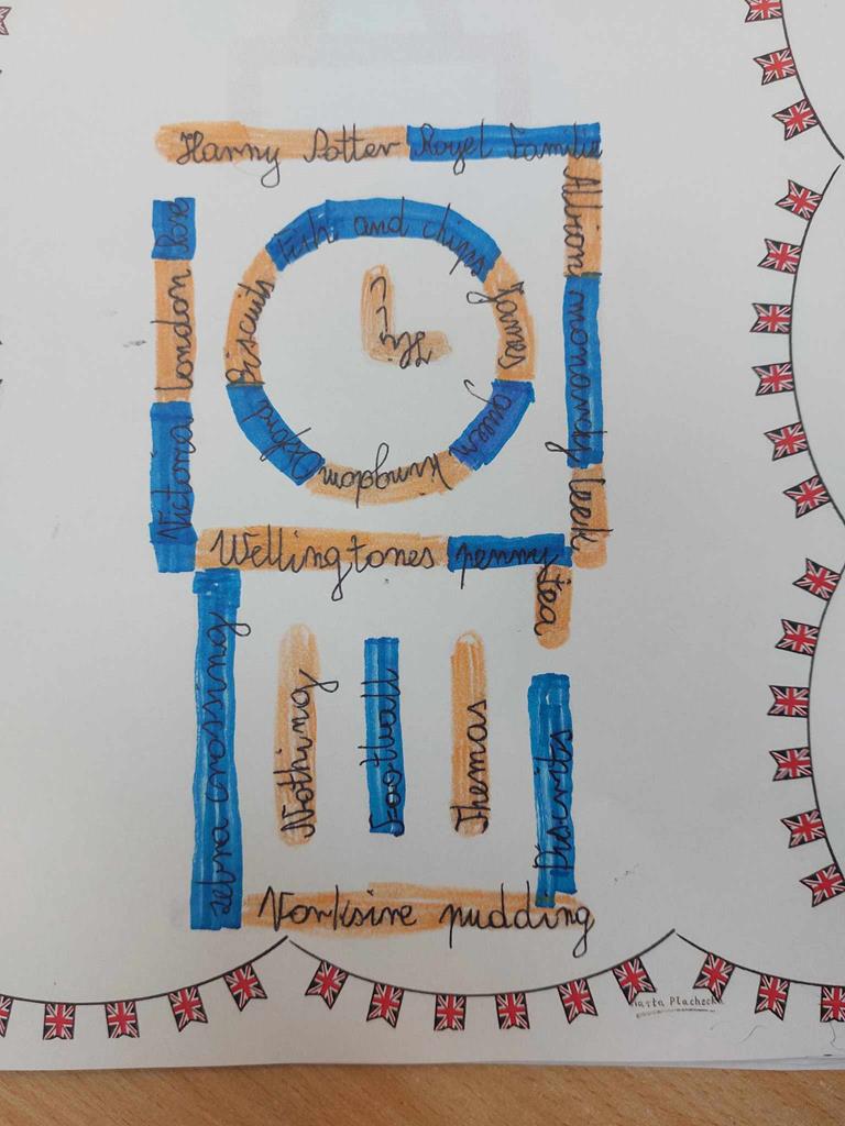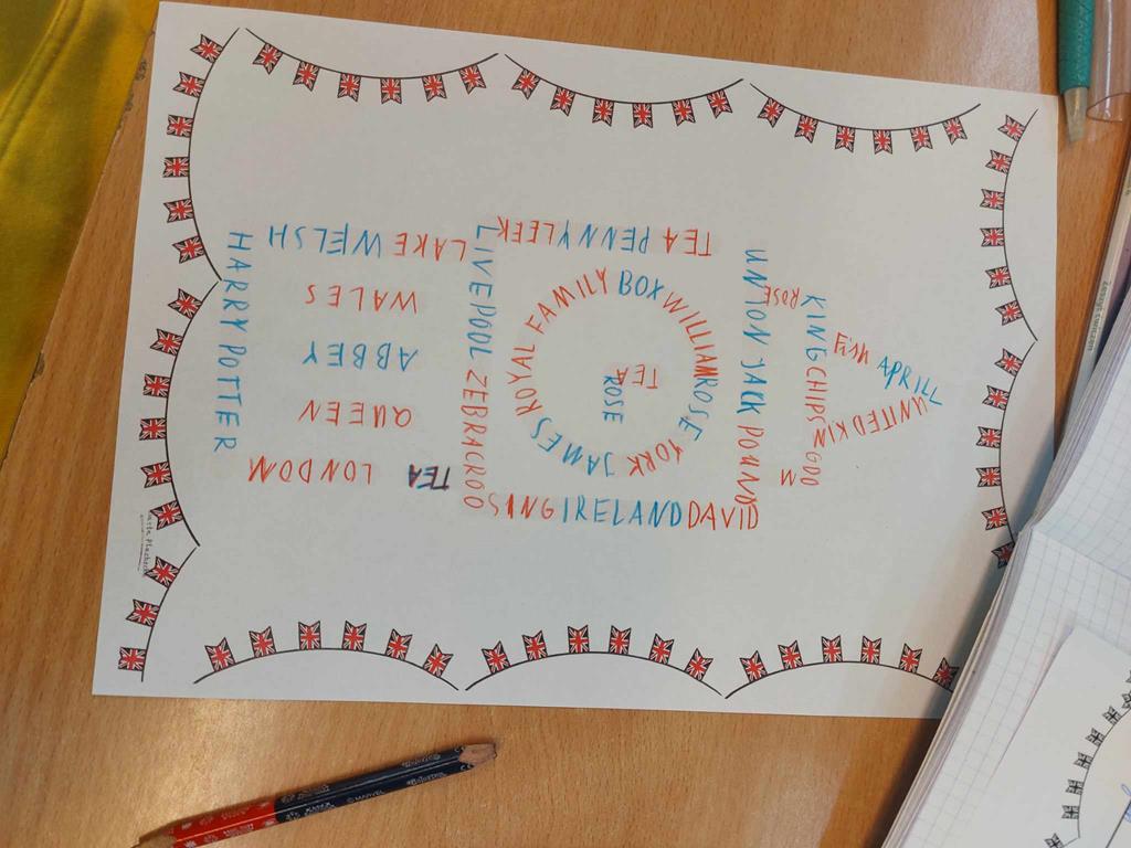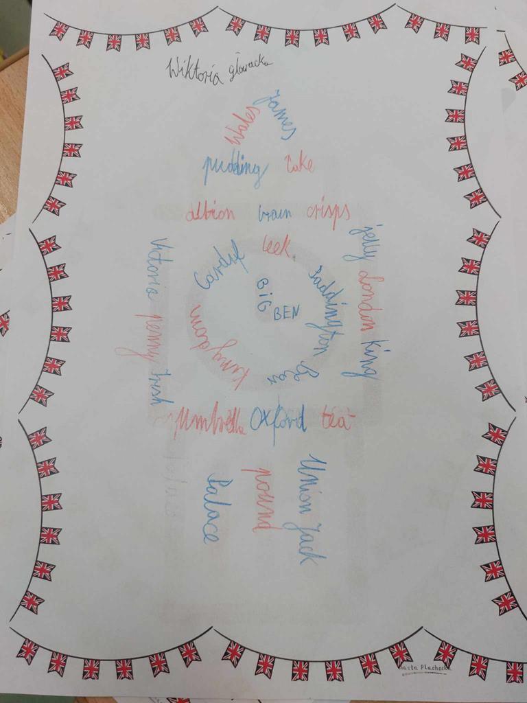 Podczas lekcji poznawaliśmy wyrazy związane z Wielką Brytanią. Korzystaliśmy z technologii AI oraz stron internetowych. Poznane wyrazy wpisywaliśmy w chmury wyrazowe tworząc unikatowe prace plastyczne. Piekliśmy również muffinki oraz mieliśmy okazję zapoznać się z różnicami występującymi w brytyjskim angielskim i amerykańskim angielskim. Celebrując to święto, rozwiązywaliśmy quizy i graliśmy w interaktywne gry językowe.