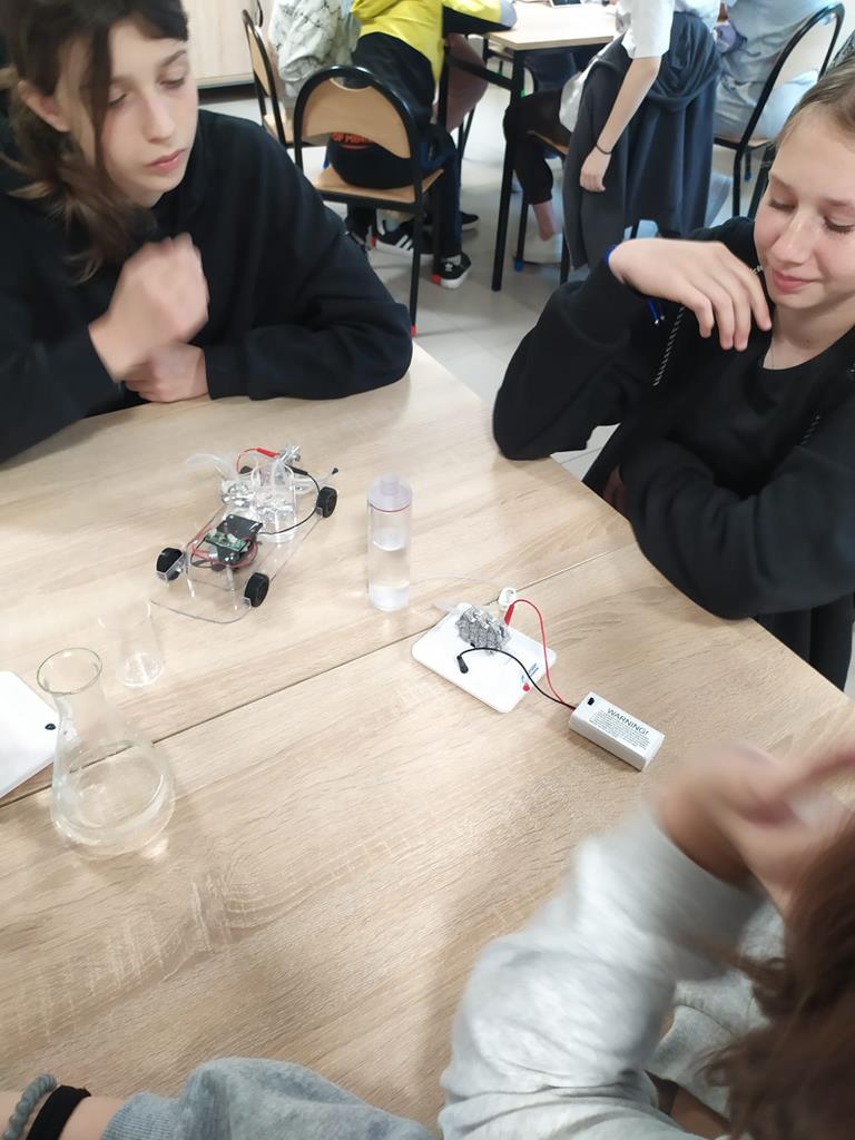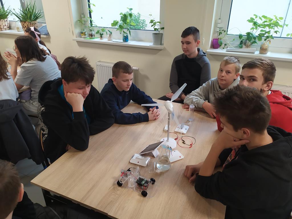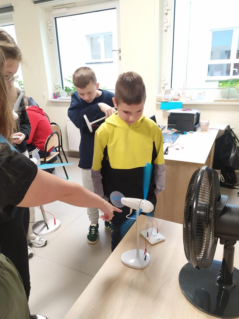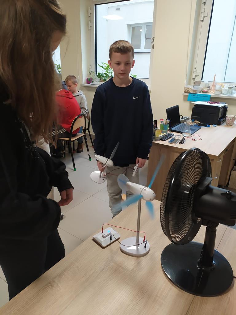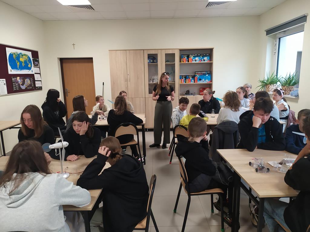 7 maja 2024r. nasi uczniowie klas 3-7 uczestniczyli w Szkole Podstawowej im. St. Wyspiańskiego w Kawnicach w zajęciach dotyczących odnawialnych źródeł energii. Celem zajęć było kształtowanie postaw proekologicznych uczniów. Zajęcia odbyły się w nowoczesnej ekopracowni wyposażonej ze środków Wojewódzkiego Funduszu Ochrony Środowiska i Gospodarki Wodnej w Poznaniu oraz Narodowego Funduszu Ochrony Środowiska i Gospodarki Wodnej. Uczniowie w ramach zajęć, które miały charakter przede wszystkim warsztatów mogli zapoznać się z zasadą działania auta z napędem wodorowym, modelami fotowoltaicznymi, modelami turbin wodnych.