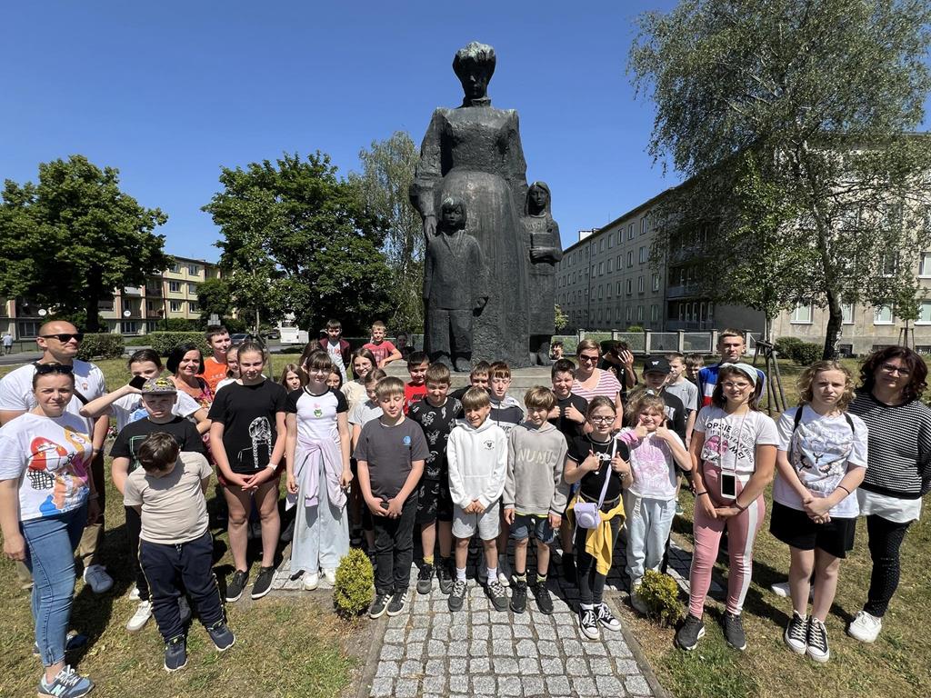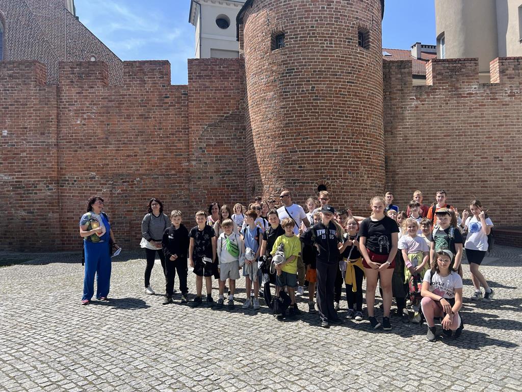Po intensywnym spacerze udaliśmy się autokarem do Kalisza, miasta, w którym żyła i czerpała inspiracje Maria Konopnicka. Kalisz, to najstarsze miasto w Polsce, którego historia sięga dalej niż historia państwa Polskiego. Naszą wizytę w Kaliszu rozpoczęliśmy od spaceru wzdłuż murów miejskich do Baszty Dorotki, gdzie obecnie znajduje się Centrum Kaliskich Baśni i Legend. Następnie udaliśmy się pod pomnik naszej patronki i zrobiliśmy sobie pamiątkowe zdjęcie. Podczas wycieczki panowała miła atmosfera, a słoneczna i ciepła pogoda sprzyjała w zdobywaniu niezapomnianych przeżyć.