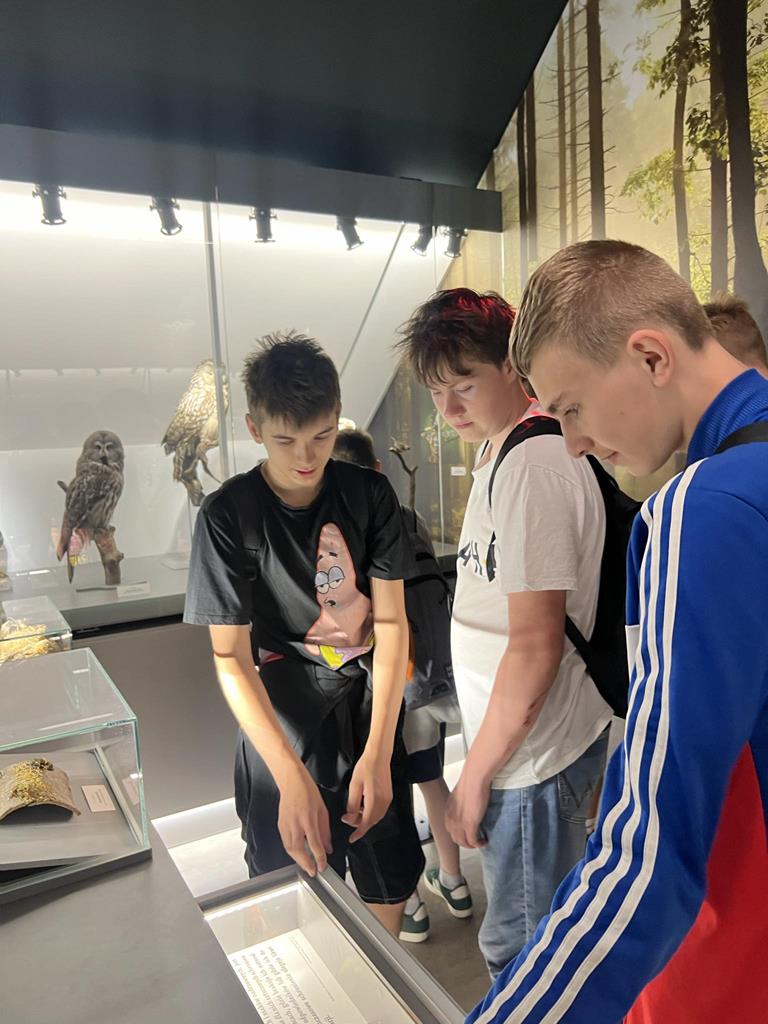 Pierwszym punktem naszej wycieczki był Gołuchów. Spacerowaliśmy po pięknym parku do zagrody żubrów, zwiedziliśmy wystawę w Muzeum Leśnictwa, które znajduje się w dawnych zabudowaniach gospodarczych gołuchowskiego zamku. Zobaczyliśmy siedliska leśne zwierząt oraz różne gatunki drzew leśnych występujących w Polsce. Niektóre ekspozycje były multimedialne, prezentujące „odgłosy lasu”. W Zagrodzie Żubrów obserwowaliśmy zachowanie tych zwierząt.
