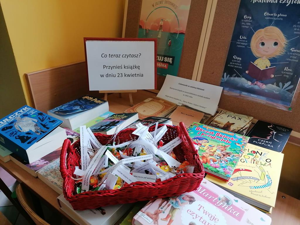 23 kwietnia obchodziliśmy Światowy Dzień Książki i Praw Autorskich. Jest to święto ustanowione przez UNESCO mające na celu promocję czytelnictwa oraz ochronę własności intelektualnej. Nasi najmłodsi uczniowie mogli uczestniczyć w lekcji bibliotecznej na której poznali historię książki oraz wykonać zakładkę do książki. Wszyscy uczniowie jak również nauczyciele mogli przynieść książę , którą czytają lub przeczytali.