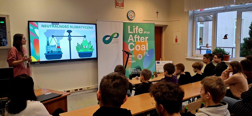 2 grudnia 2025r. uczniowie klas 6-8 naszej szkoły uczestniczyli w warsztatach zorganizowanych przez doradcę klimatycznego z Urzędu Miejskiego w Golinie panią Marta Szymankowską. Prowadzącą warsztaty była pani pani Agata Kuźmińska – Prezeska Fundacji Instytut Zielonej Przyszłości, która przybliżyła założenia projekt LIFE AFETR COAL PL „Życie po węglu”. Program związany jest przede wszystkim z wdrażaniem Strategii na rzecz Neutralności Klimatycznej Wielkopolska Wschodnia 2040.