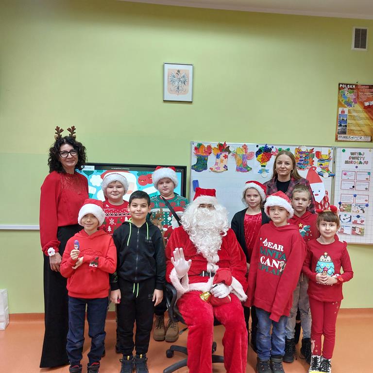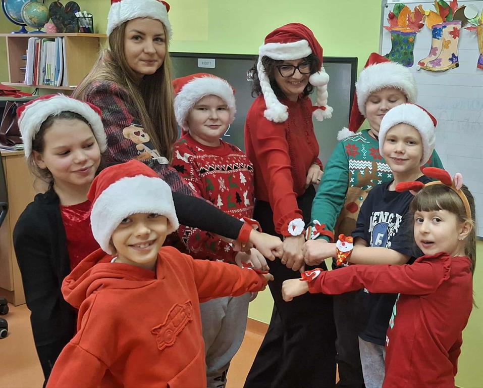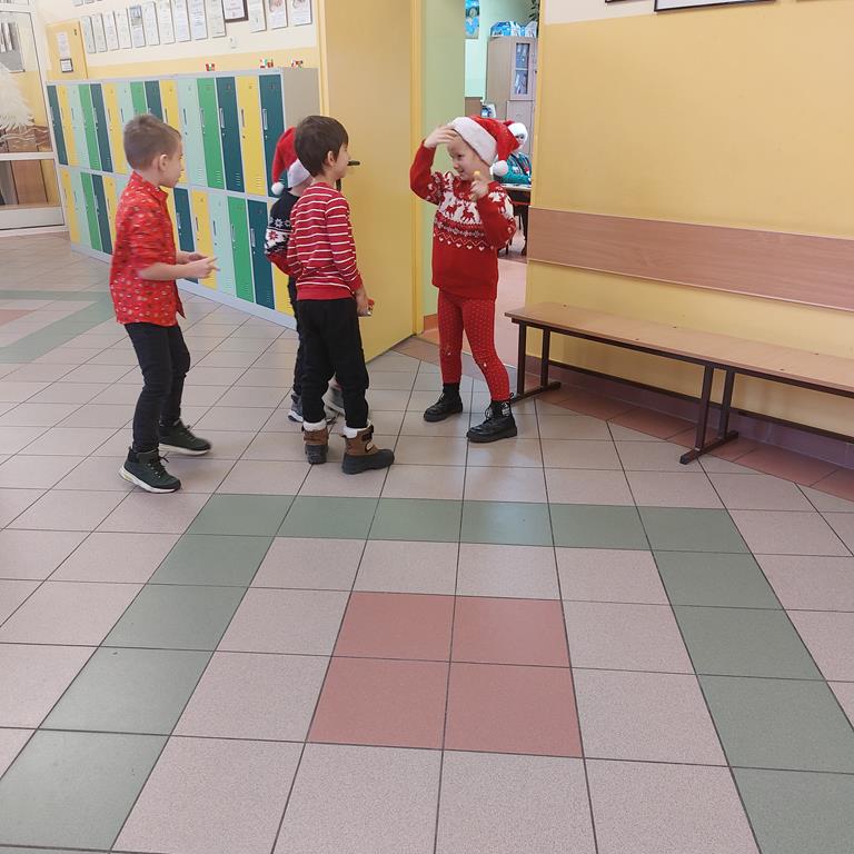Wielu uczniów przyszło ubranych w mikołajkowe stroje, czapki, rogi reniferów i czerwone sweterki – szkoła wyglądała dziś naprawdę wyjątkowo!