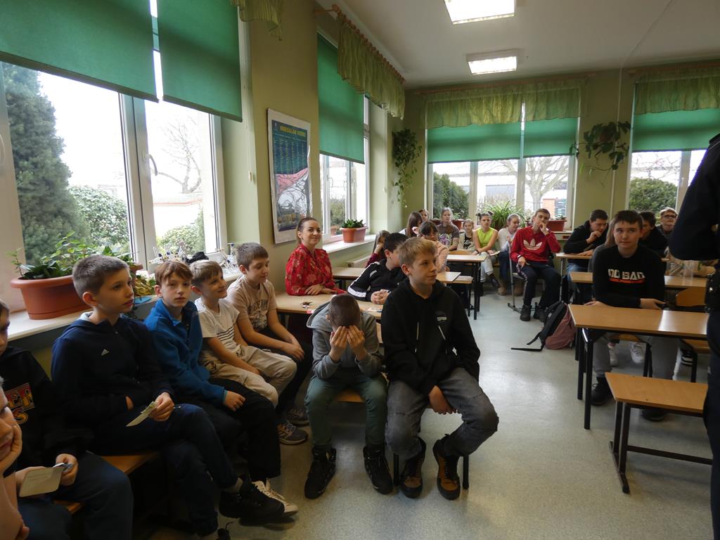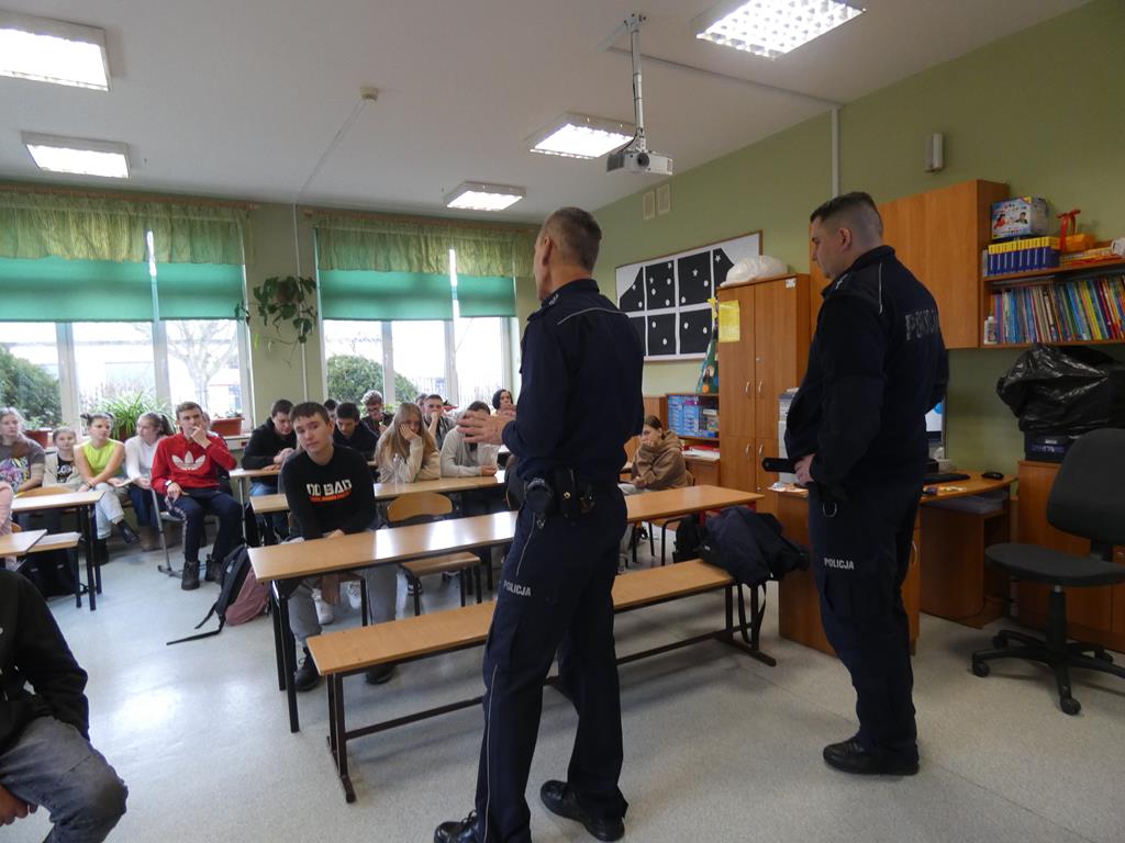 Prelekcja była pouczająca i interesująca, uczniowie zadawali wiele pytań dotyczących przekazanych informacji, jak również innych aspektów pracy w policji.