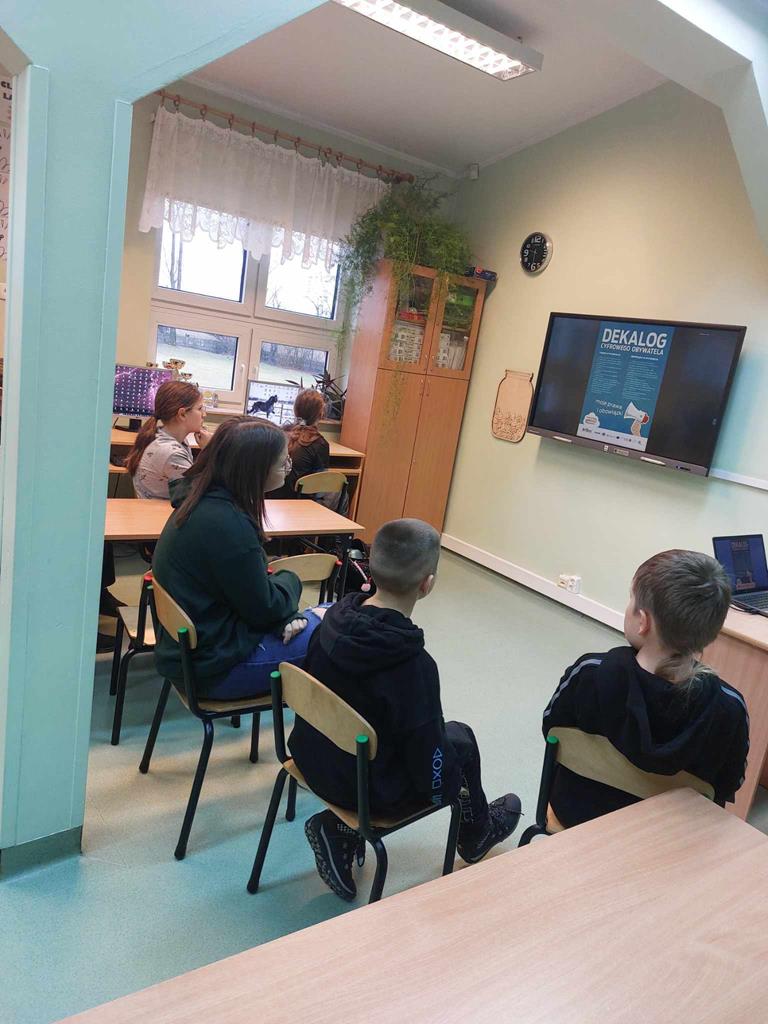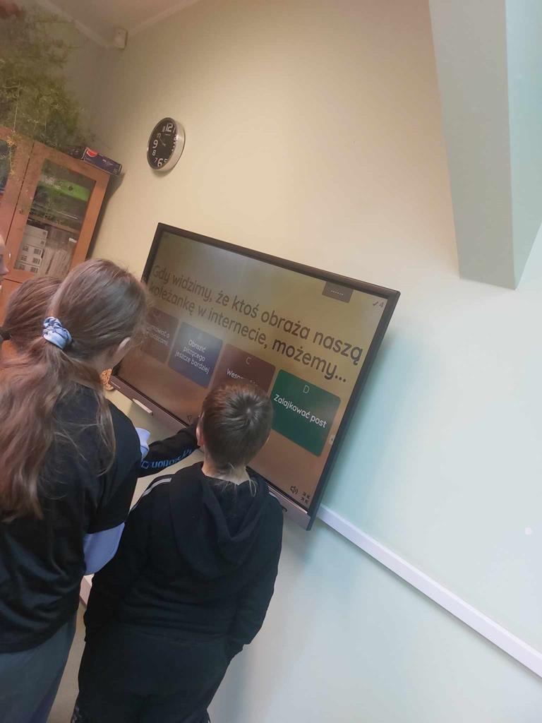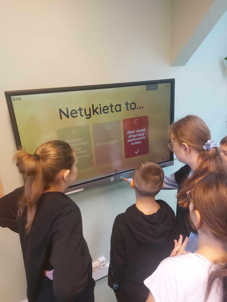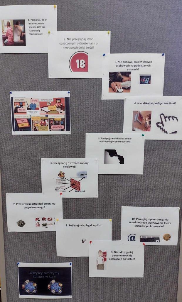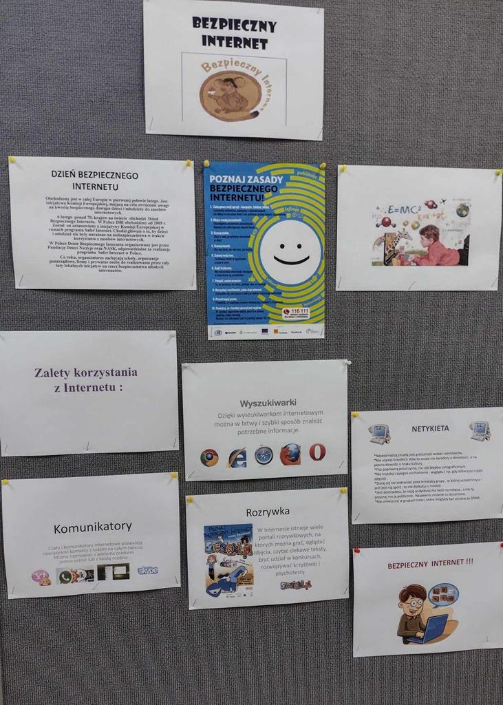Uczniowie zapoznawali się także z zasadami promującymi odpowiedzialne korzystanie z technologii online i poszerzali swoją wiedzę teoretyczną i praktyczną w ramach lekcji informatyki oraz z gazetek tematycznych w naszej szkole.