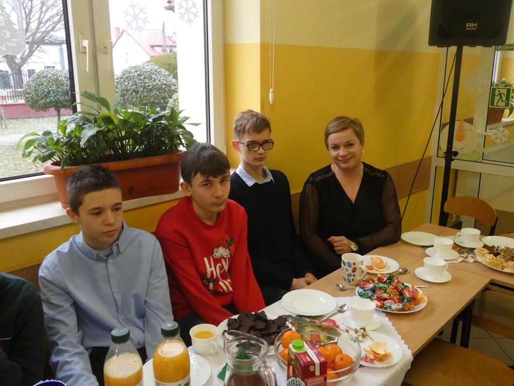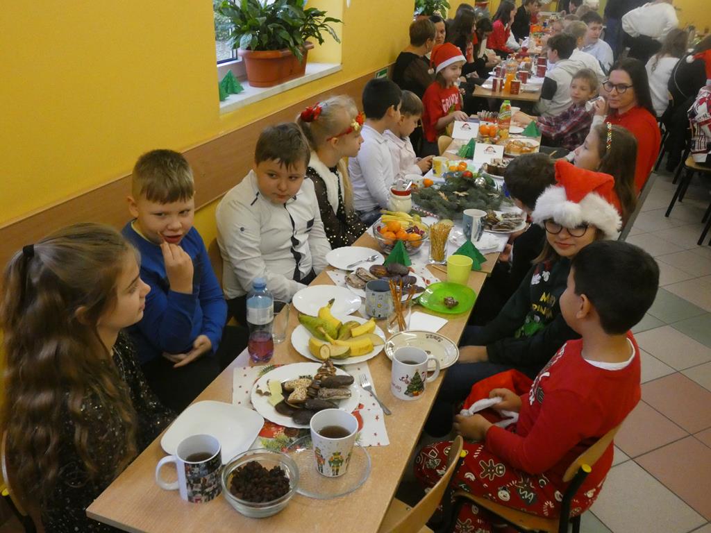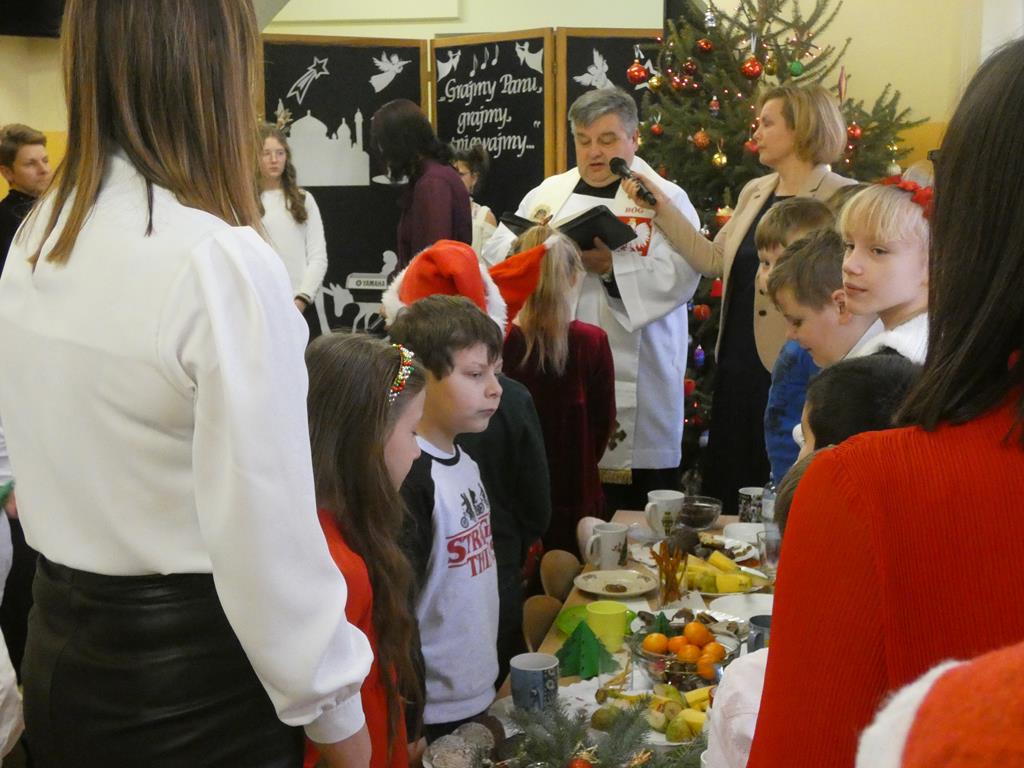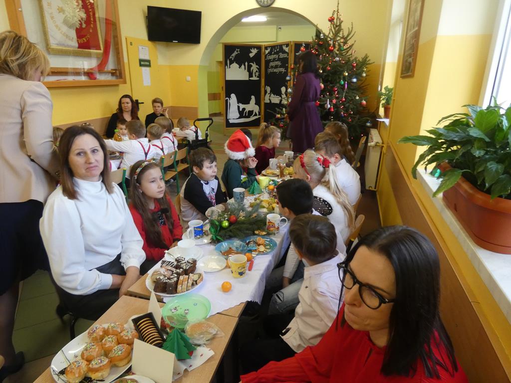 Święta Bożego Narodzenia najchętniej spędzamy w domu, w gronie najbliższych. Długo się do nich przygotowujemy, gromadzimy prezenty, stroimy choinkę, na wigilijny stół zastawiony świątecznymi potrawami kładziemy opłatek - symbol wspólnoty, miłości i zgody. O tych wszystkich tradycjach świątecznych i krótkiej historii narodzin Pana Jezusa usłyszeliśmy w montażu słowno- muzycznym przygotowanym przez uczniów klasy III.