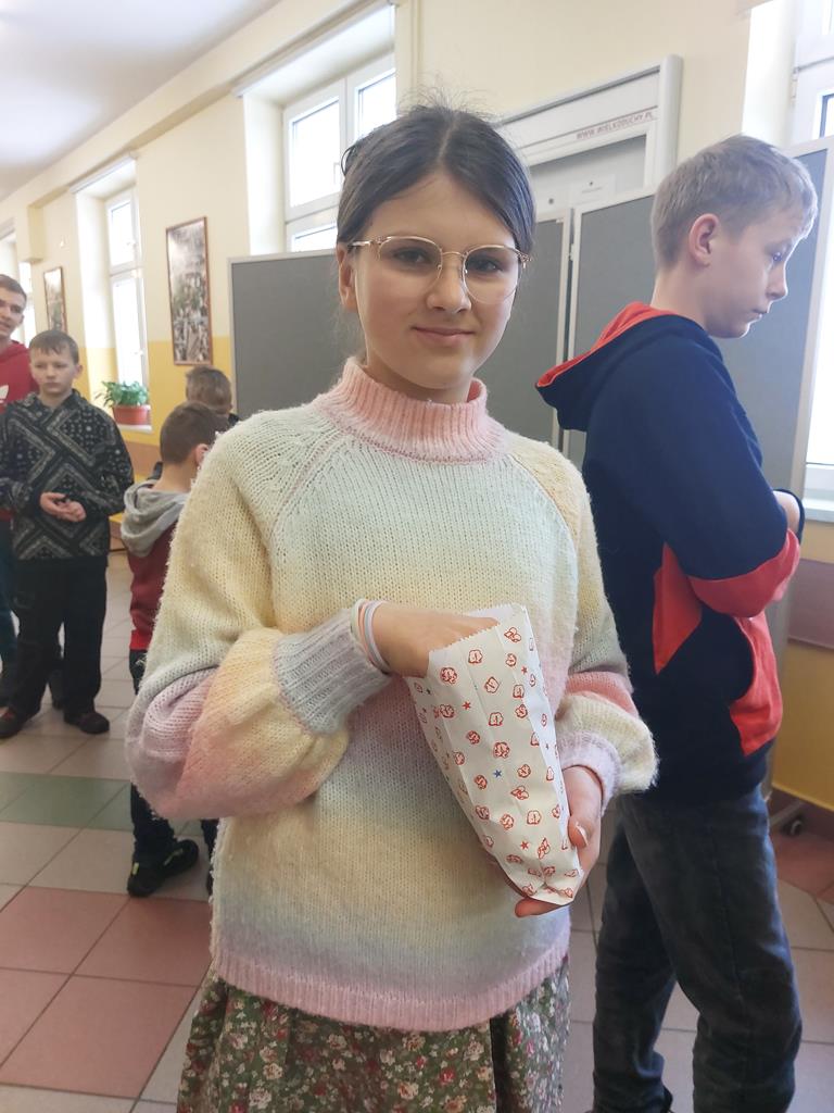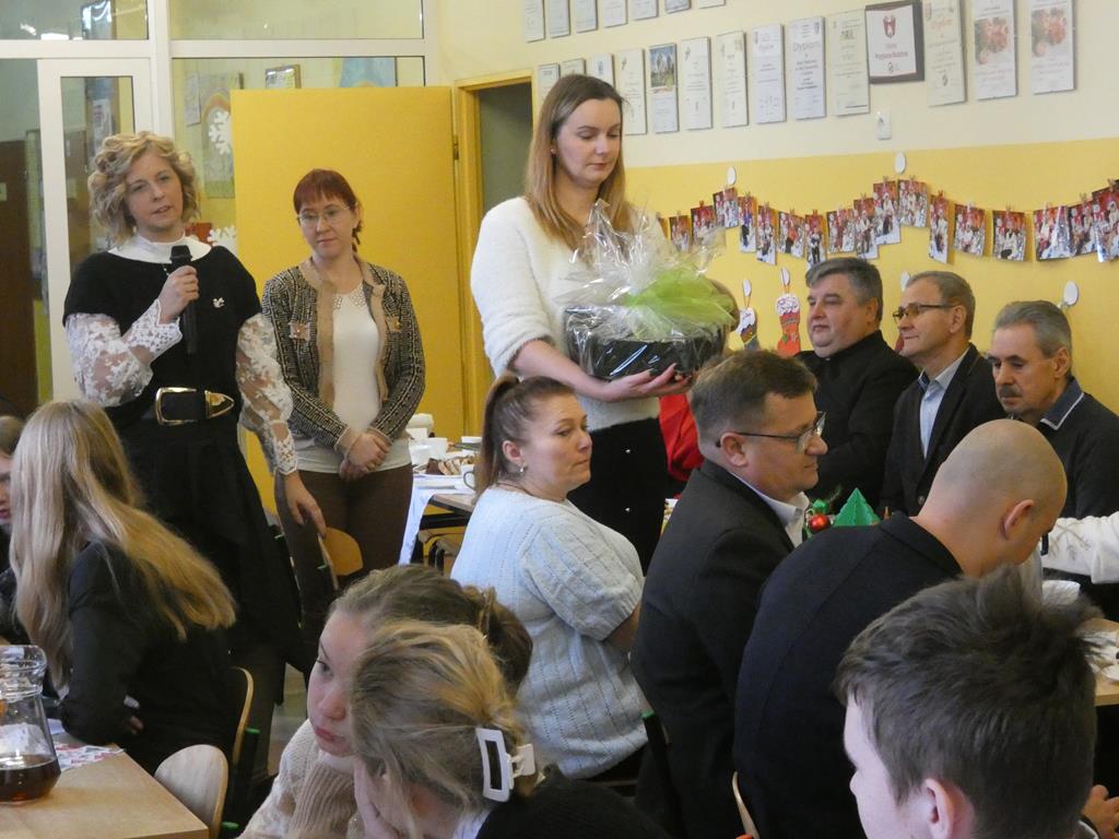 Na zakończenie spotkania Pani Marta Kołodziejczak i Pana Michał Witkowski podziękowali wszystkim za przyłączenie się do akcji „Wigilia bez plastiku” oraz wręczyli upominki wszystkim wytrwałym, którzy przez ostatnie tygodnie wykonywali zadania „Kalendarza adwentowego”.