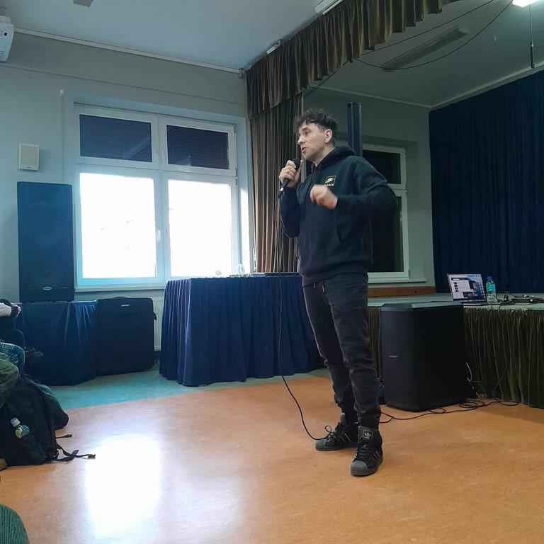 Klasa VII w poniedziałek 8 stycznia miała niebywałą okazję uczestniczyć w spotkaniu z raperem Mirosławem Kolczykiem. To muzyczne wydarzenie o charakterze profilaktycznym było przeznaczone dla młodzieży ze szkół podstawowych znajdujących się w gminie Golina.