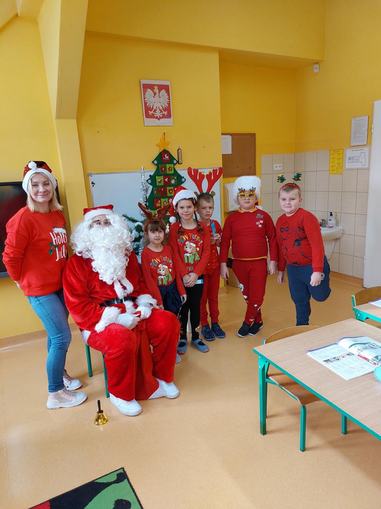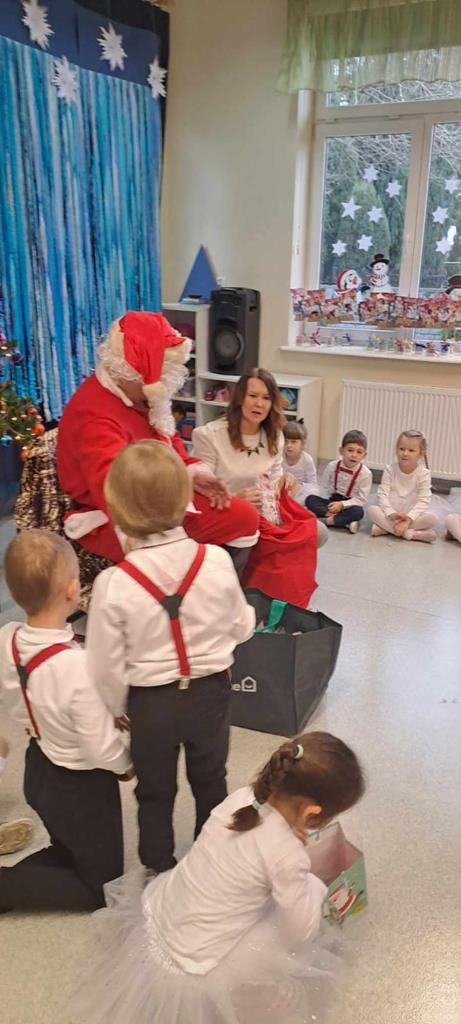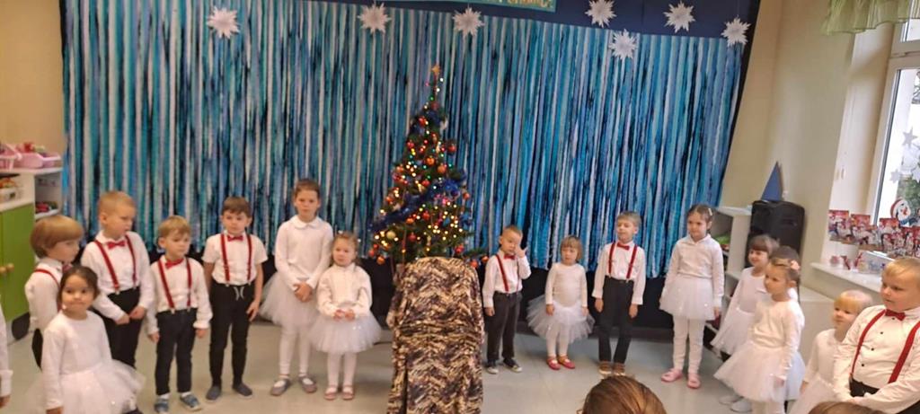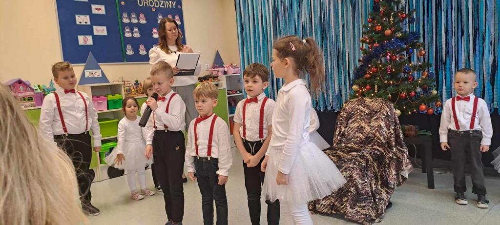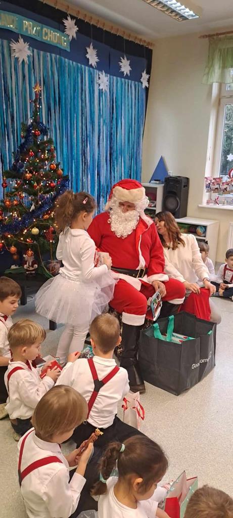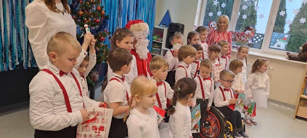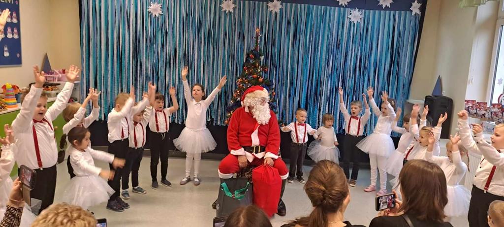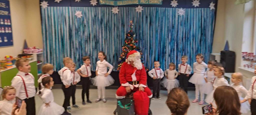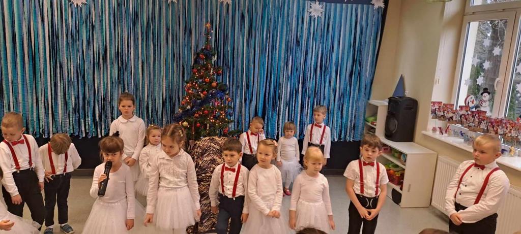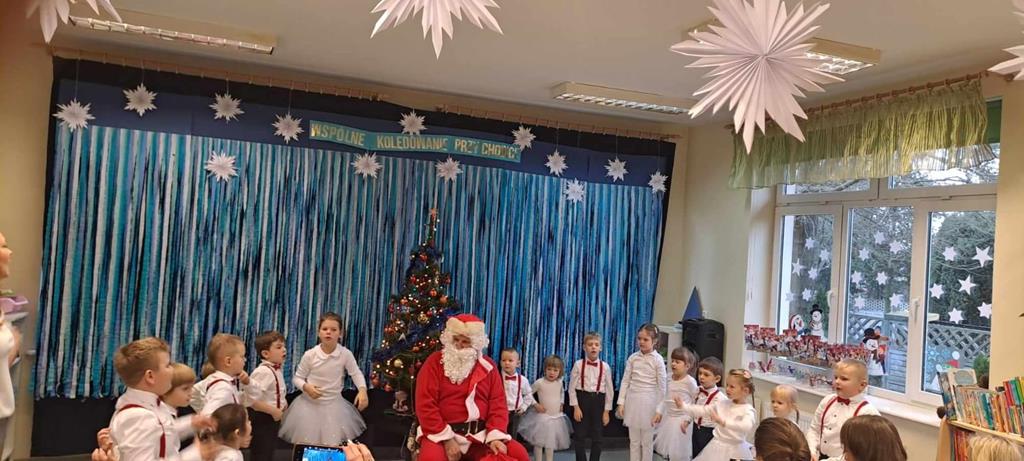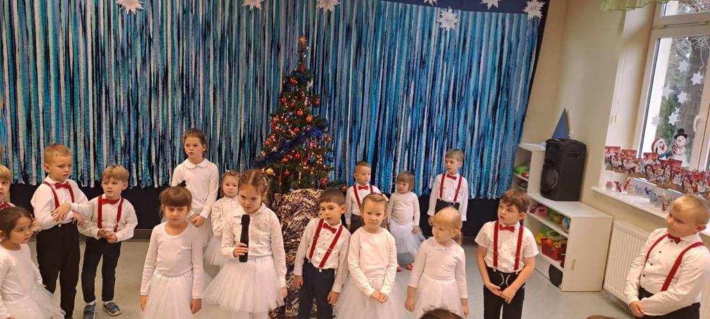 Spotkanie odbyło się dnia 18 grudnia 2023r. Przedszkolaki z wielkim przejęciem, najpiękniej jak umiały, dostarczając wszystkim gościom niezwykłych doznań i wzruszeń recytowały wiersze, śpiewały piosenki świąteczne oraz kolędy. Na zakończenie naszych małych aktorów odwiedził Mikołaj i wręczył prezenty.