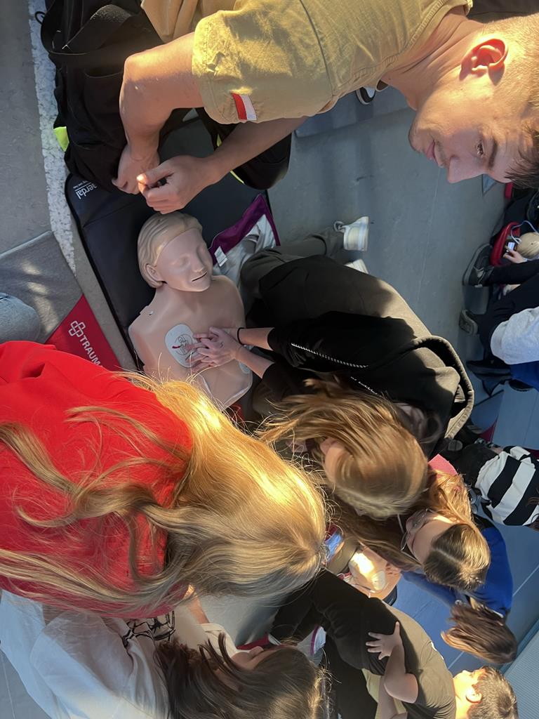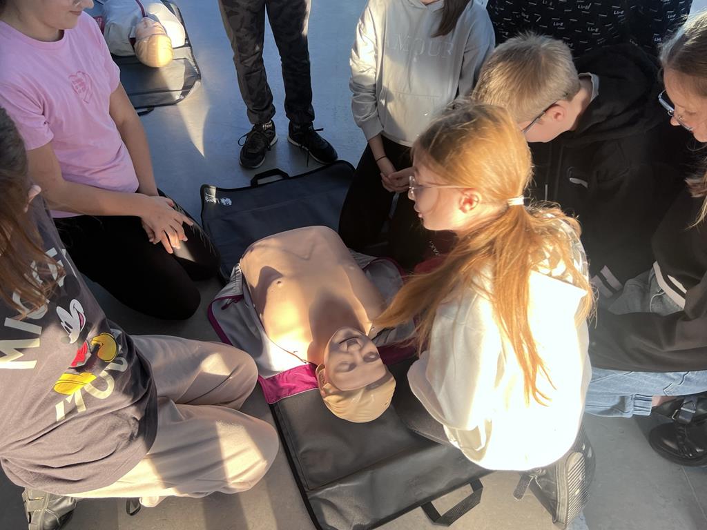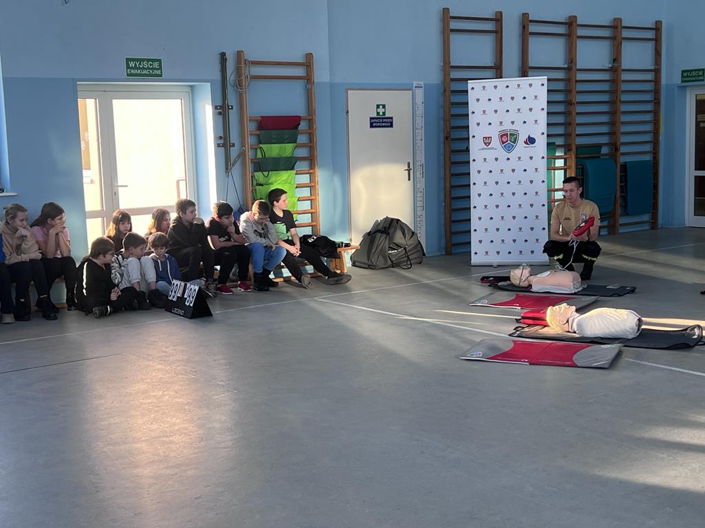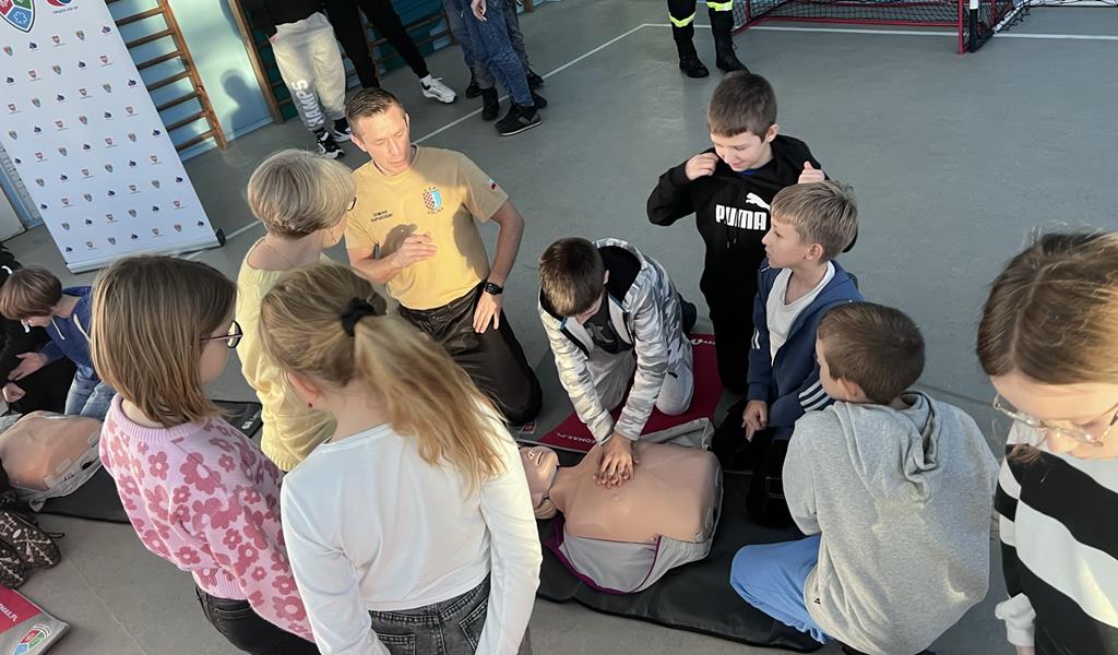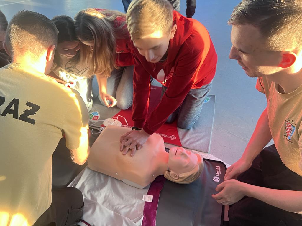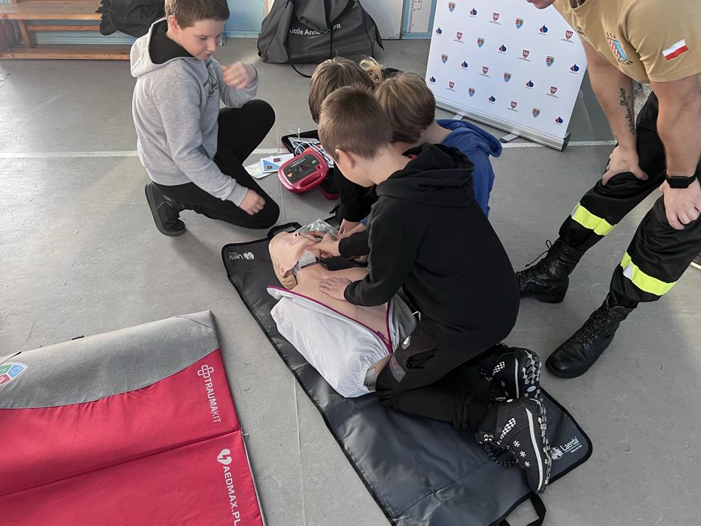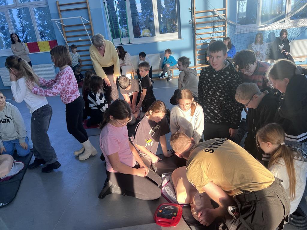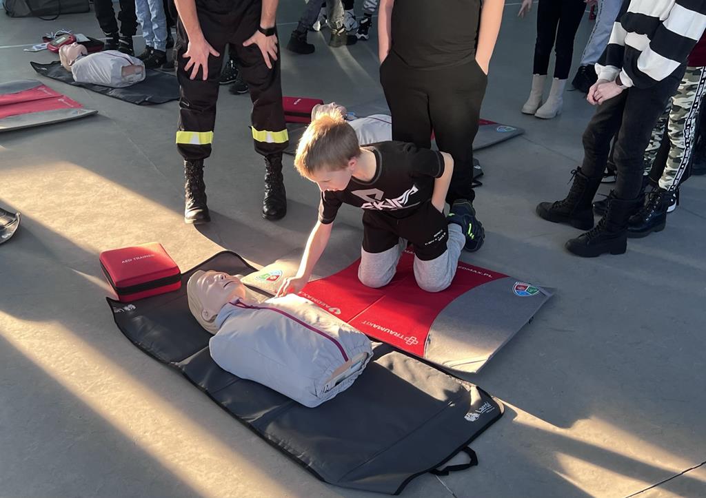 Niewątpliwie najciekawszym elementem pokazu był defibrylator. Uczniowie chętnie wykonywali ćwiczenia z zakresu resuscytacji krążeniowo-oddechowej na fantomach oraz obsługiwali defibrylator.