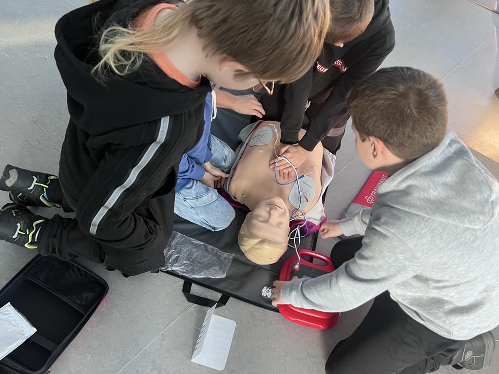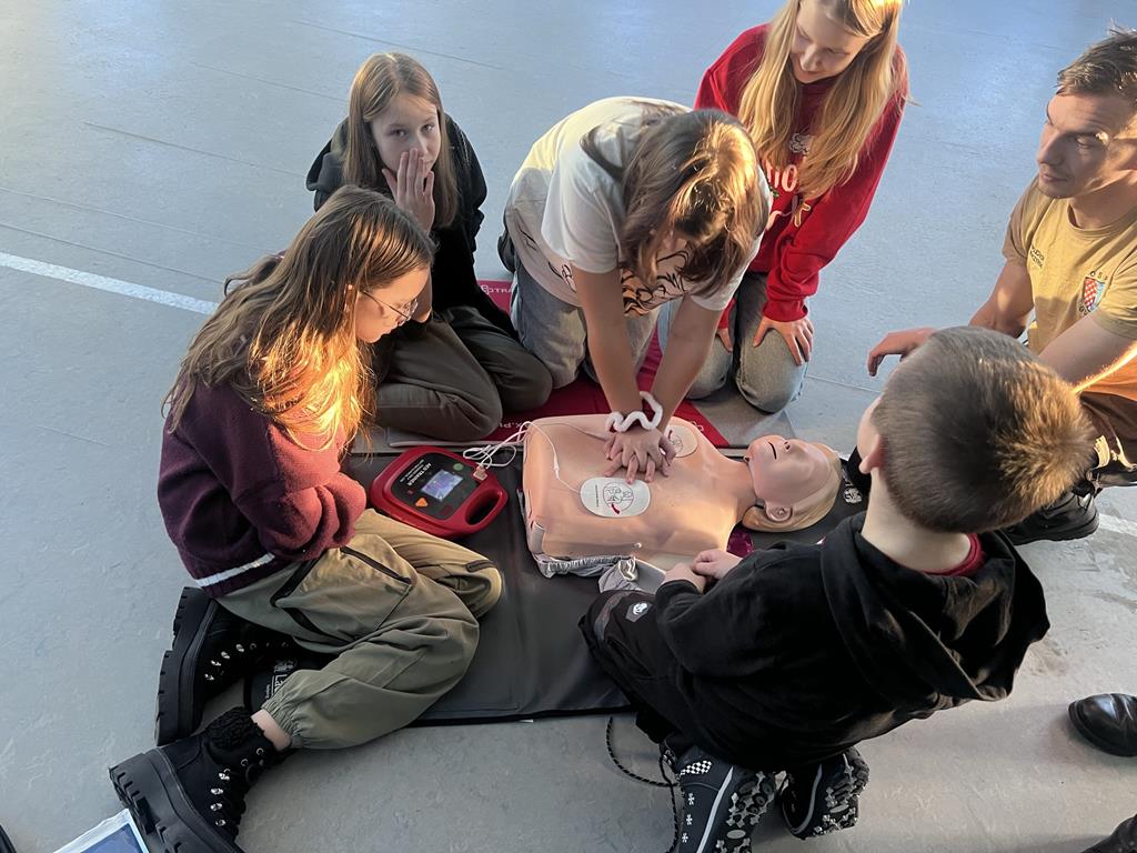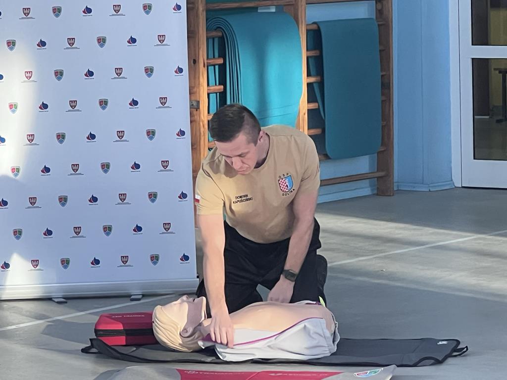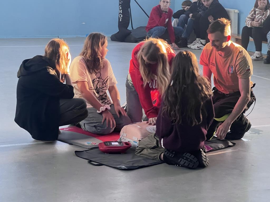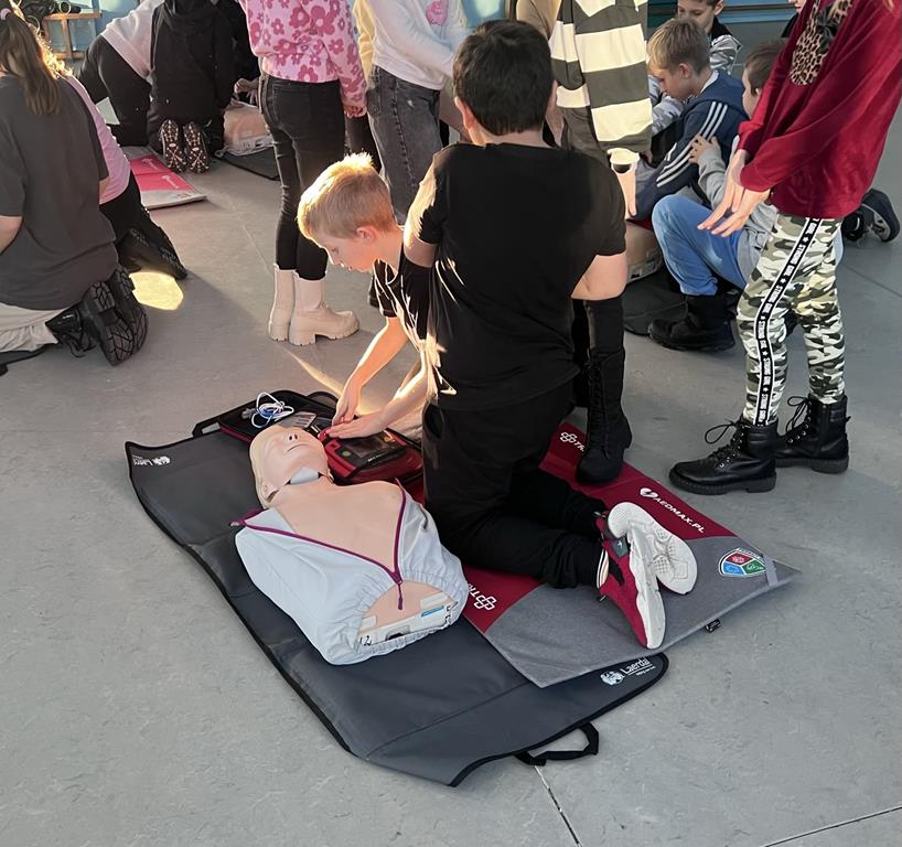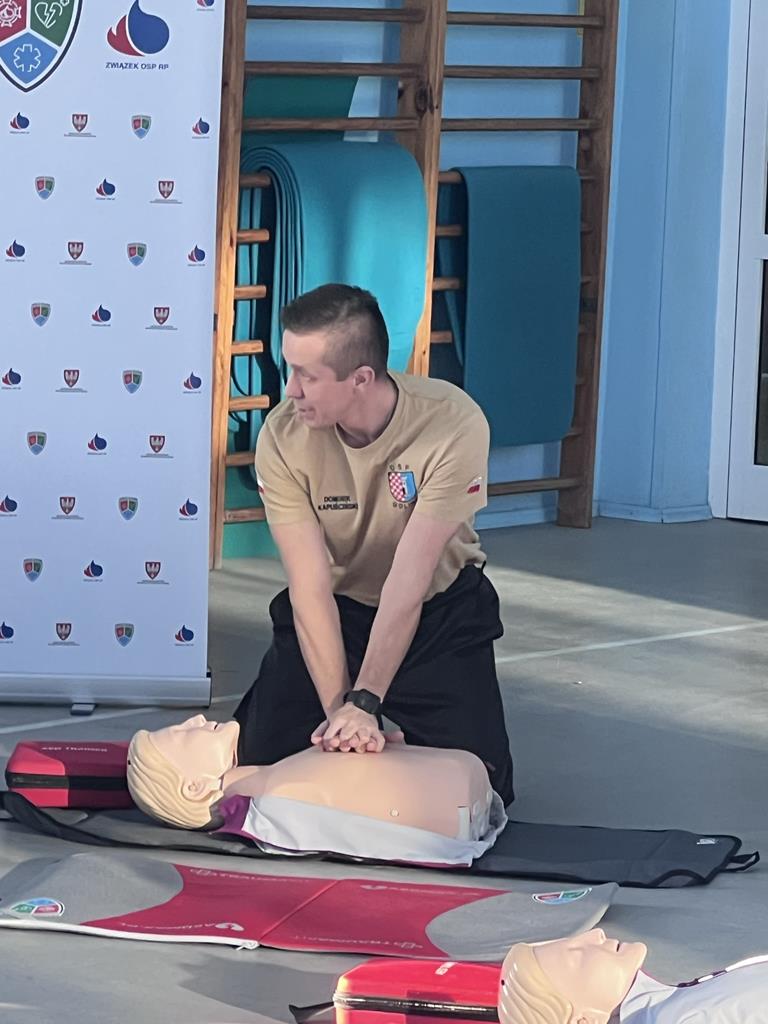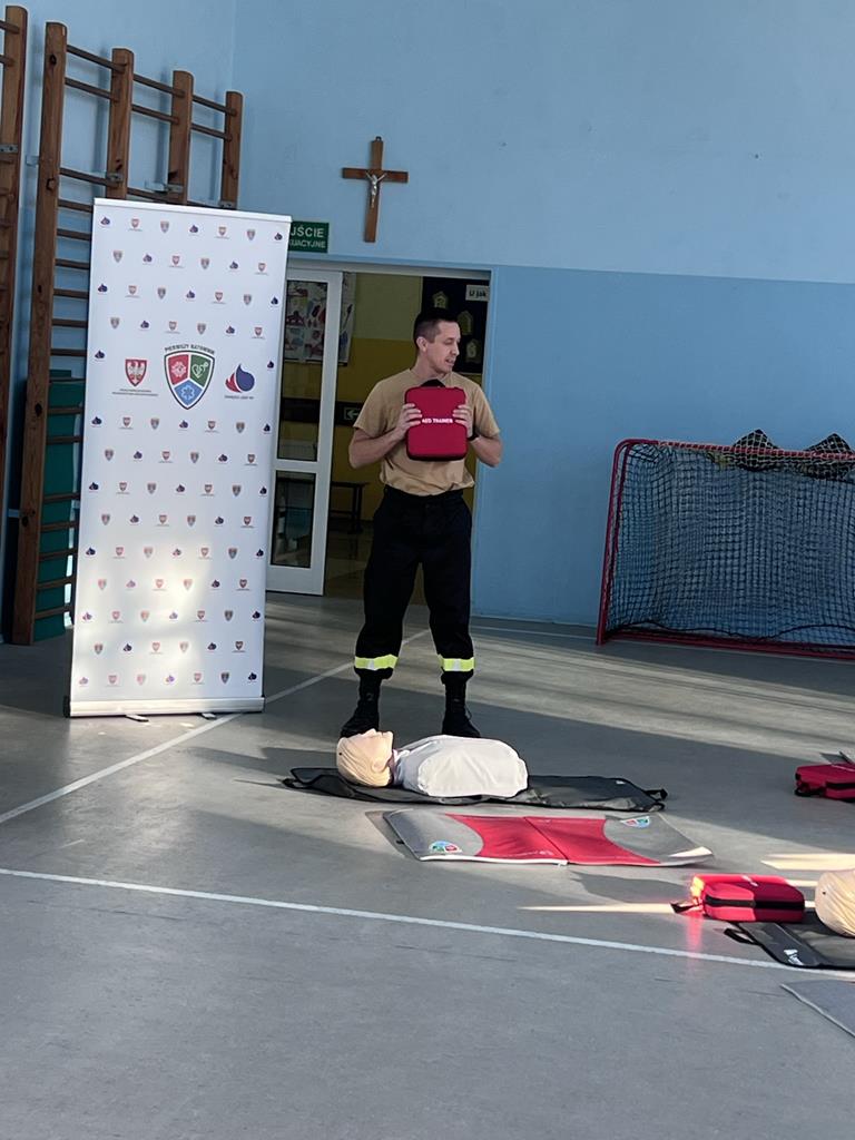 Niewątpliwie najciekawszym elementem pokazu był defibrylator. Uczniowie chętnie wykonywali ćwiczenia z zakresu resuscytacji krążeniowo-oddechowej na fantomach oraz obsługiwali defibrylator.