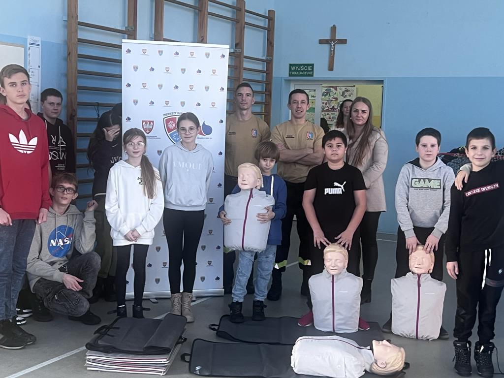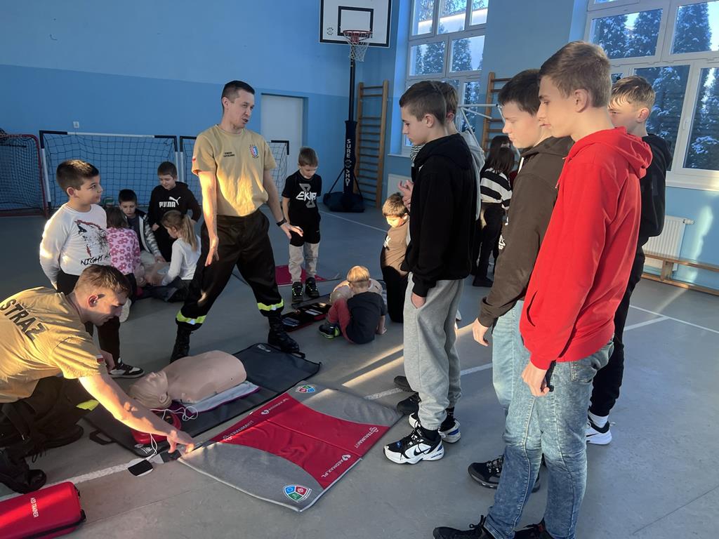 4 grudnia uczniowie klas IV-VIII wraz z wychowawcami uczestniczyli w szkoleniu z udzielania pierwszej pomocy. Szkolenie przeprowadzili druhowie OSP Golina - Dominik Kapuściński oraz Wojciech Kaczyński. Był to bardzo aktywnie spędzony czas. Strażacy rozpoczęli spotkanie od przedstawienia zasad udzielania pierwszej pomocy oraz pokazania pozycji bezpiecznej, następnie została przeprowadzona resuscytacja krążeniowo- oddechowa na specjalnych fantomach.