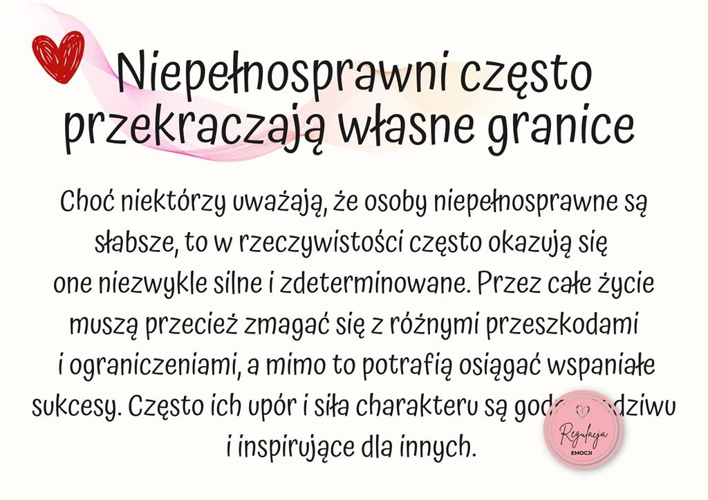 W 2012 roku Polska ratyfikowała Konwencję o prawach osób niepełnosprawnych, której przesłanie brzmi: pełne i aktywne uczestnictwo osób niepełnosprawnych we wszystkich dziedzinach ludzkiej aktywności, na równi z innymi osobami.
