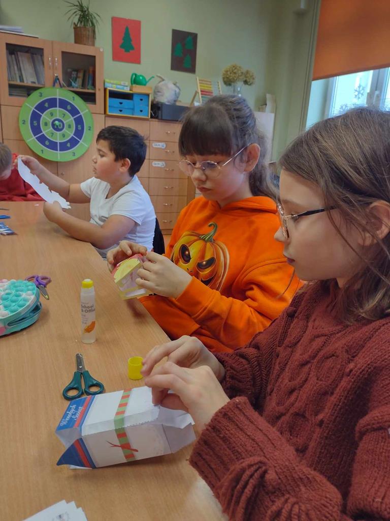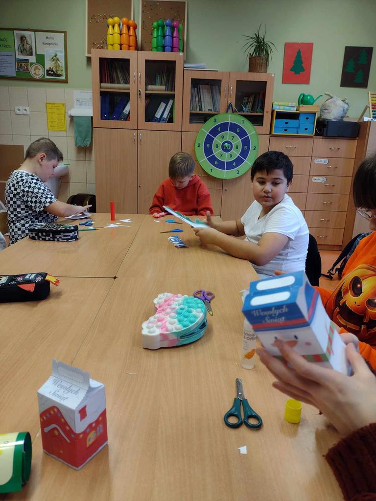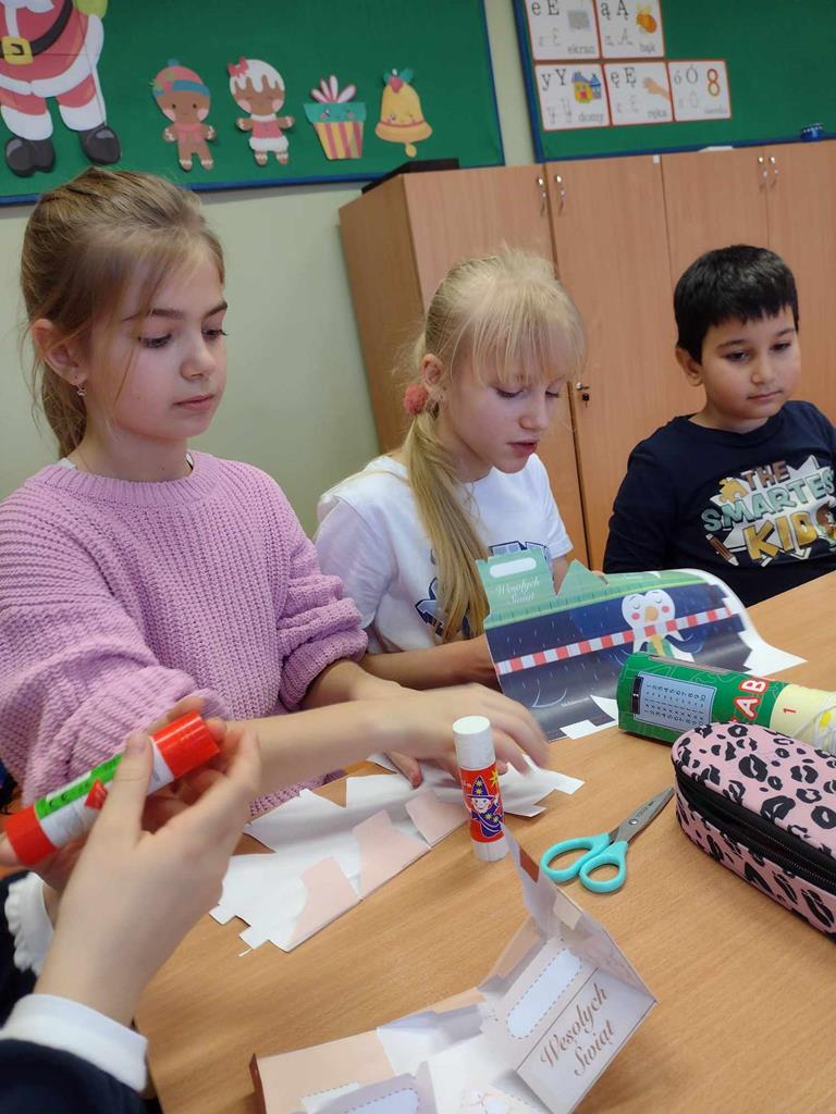 Dzieci uczestniczące w zajęciach świetlicowych również intensywnie przygotowują się do Świąt Bożego Narodzenia poprzez udział w różnorodnych zajęciach tematycznych związanych ze świętami. Rozwijają w ten sposób swoją kreatywność i zdolności oraz zainteresowania. Uczniowie poznają tradycje świąteczne w Polsce i na świecie, a także przygotowują prace plastyczne i dekoracje na korytarz szkolny. Rozwiązują także karty pracy o tematyce świątecznej – wspierające różne obszary rozwoju oraz słuchają ciekawych opowieści wigilijnych, a przede wszystkim miło i aktywnie spędzają czas.