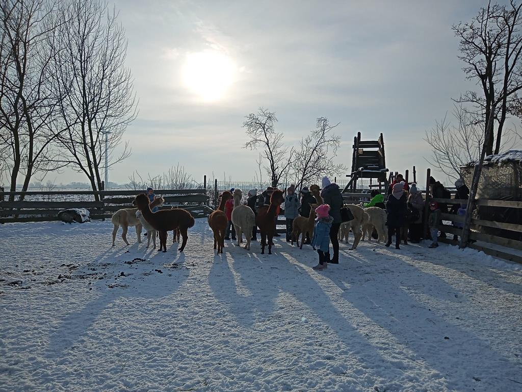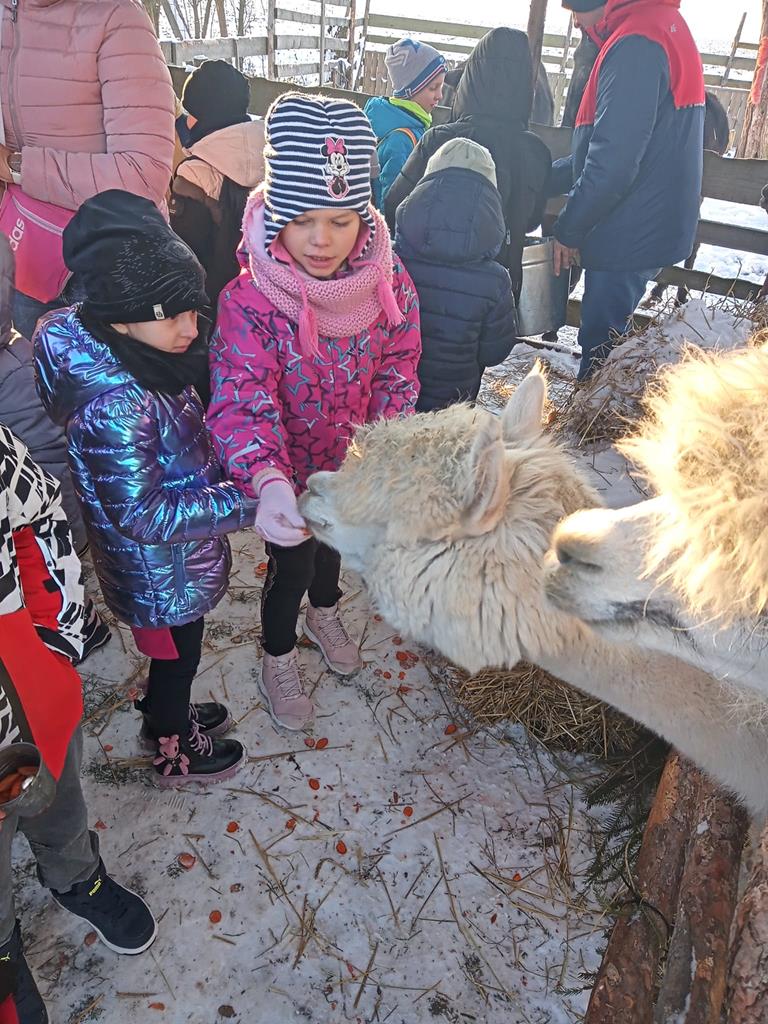 5 grudnia przedszkolaki i klasy 1-3 w ramach wyjazdu mikołajkowego, odwiedziły "Wiejskie Podwórko- alpaki i inne zwierzaki"- Poniatówek. Przywitały nas alpaki, owce i osiołki. Dzieci mogły nakarmić i pogłaskać zwierzaki. Następnie, w specjalnie przygotowanej stodole, rozgrzały się gorącą czekoladą, brały udział w warsztatach zdobienia mini choinek i śpiewały piosenki o świątecznej tematyce. Później napisały list do Mikołaja, który odwiedził je z workiem prezentów. Każde dziecko wręczyło Mikołajowi list, a w zamian otrzymało pluszowego skrzata.