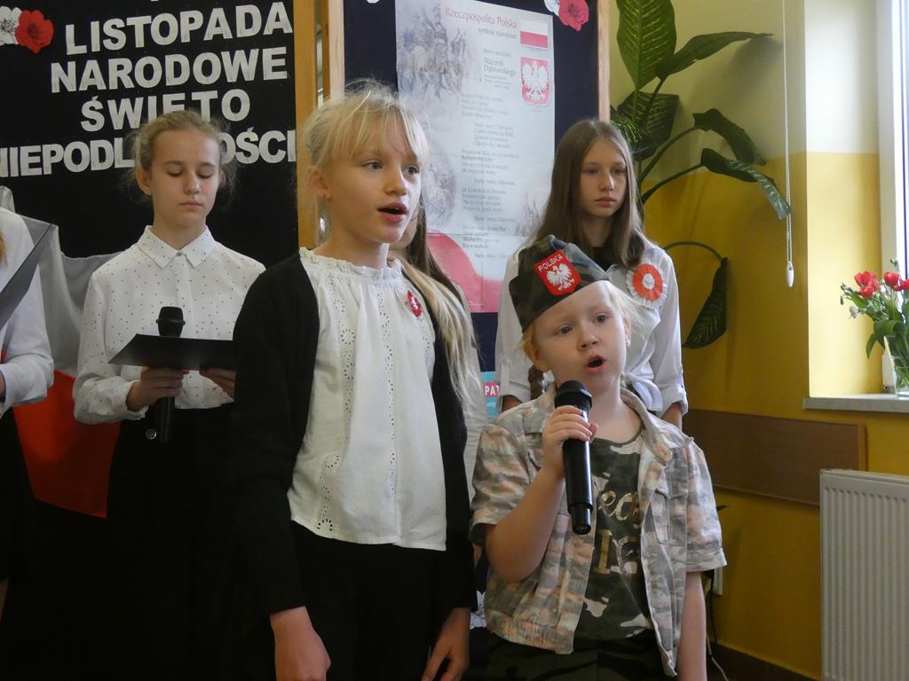 Tradycyjnie jak co roku uczniowie naszej szkoły wzięli udział w kolejnej edycji Przeglądu Pieśni Patriotycznych „Golina dla Niepodległej” zorganizowanego przez Dom Kultury w Golinie pod patronatem Burmistrza Mirosława Durczyńskiego. W 105. rocznicę odzyskania przez Polskę niepodległości usłyszeliśmy pieśni żołnierskie i partyzanckie sławiące tych, którzy polegli na polu walki za naszą wolność. Wybrzmiały także słowa miłości i szacunku do swojego kraju ojczystego. Szkołę naszą reprezentowali uczniowie w różnych kategoriach wiekowych: Magdalena Gauza (kl.II), Nadia Kasprzyk, Nadia Szczepańska (kl.V) oraz Vanessa Laskowska (kl. VI). W kategorii występów solowych kl. I-IV jury wyróżniło Magdalenę Gauzę za wykonanie utworu „Hej, hej ułani malowane dzieci”, która uczestniczyła również w obchodach gminnych 11 listopada.