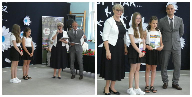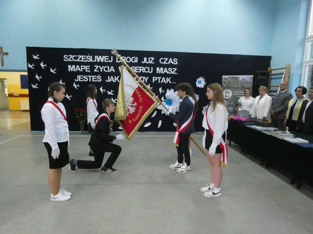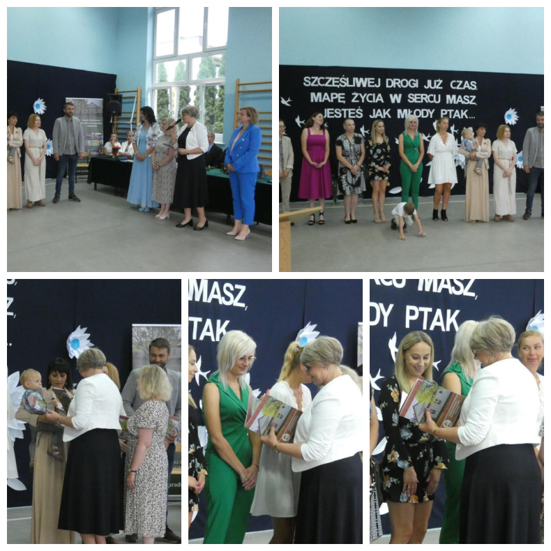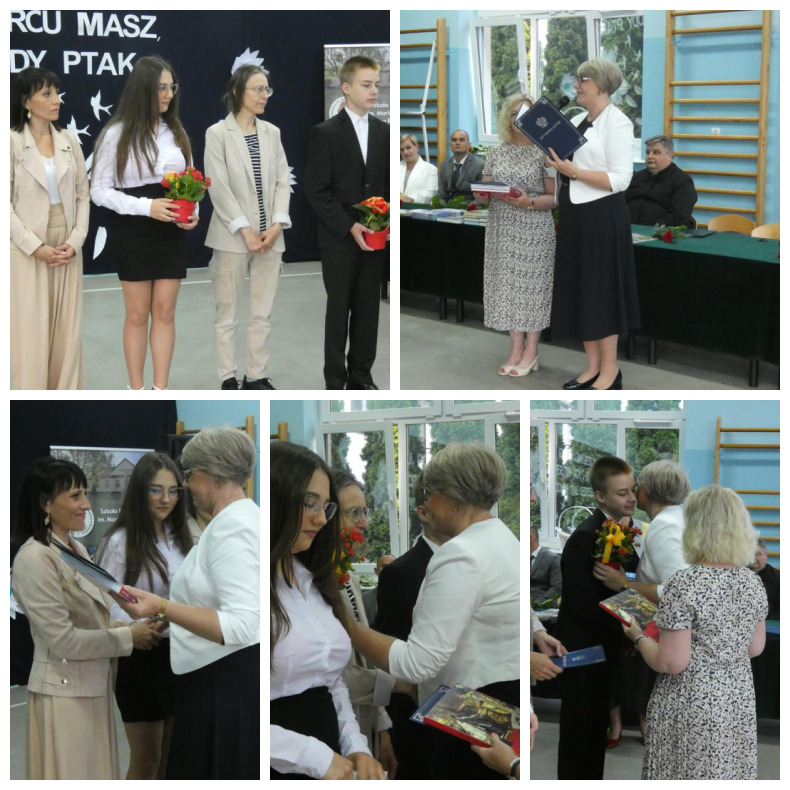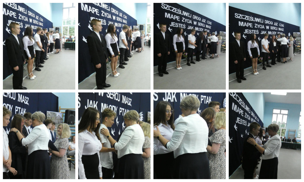 Podczas uroczystości odbyło się przekazanie sztandaru przedstawicielom klas młodszych. Pani Dyrektor wręczyła uczniom świadectwa z wyróżnieniem, a ich rodzicom okolicznościowe listy gratulacyjne. Nie zabrakło też nagród dla uczniów, którzy zostali „Supersportowcami Roku”. Rodzicom absolwentów podziękowano za ich pracę i zaangażowanie na rzecz szkoły. Następnie ósmoklasiści podziękowali pani Dyrektor, wychowawczyni, nauczycielom, pracownikom administracji i obsługi, a także swoim rodzicom za trud, życzliwość, wyrozumiałość, a przede wszystkim przekazaną wiedzę.