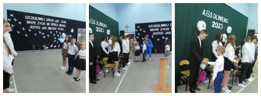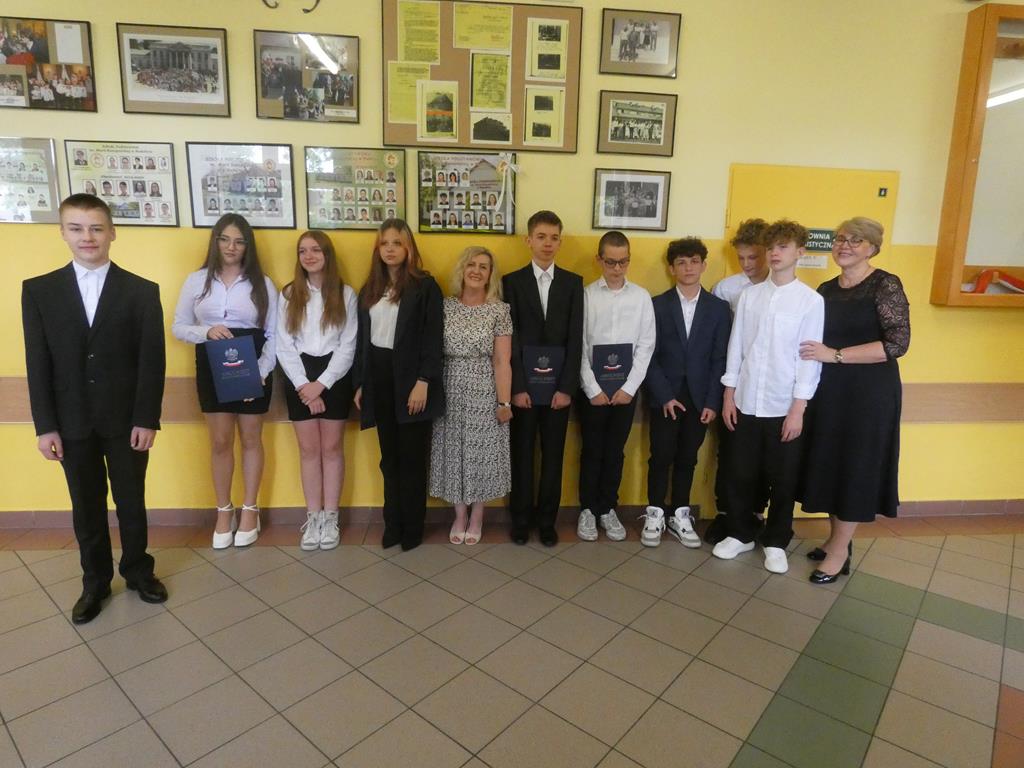 23 czerwca 2023 roku odbyło się w naszej szkole uroczyste zakończenie roku szkolnego 2022/2023 i pożegnanie uczniów klasy VIII. Ostatni dzień roku szkolnego, to czas podsumowań, gratulacji i podziękowań. Wychowankowie p. Bernadety Kucharskiej stali się absolwentami naszej placówki. Świadkami tego wydarzenia byli zaproszeni goście: Proboszcz ks. Andrzej Czubaszewski, Radni Rady Miasta pan Kazimierz Substelny i pan Krzysztof Szymański oraz młodsi uczniowie, rodzice, dyrekcja i nauczyciele.