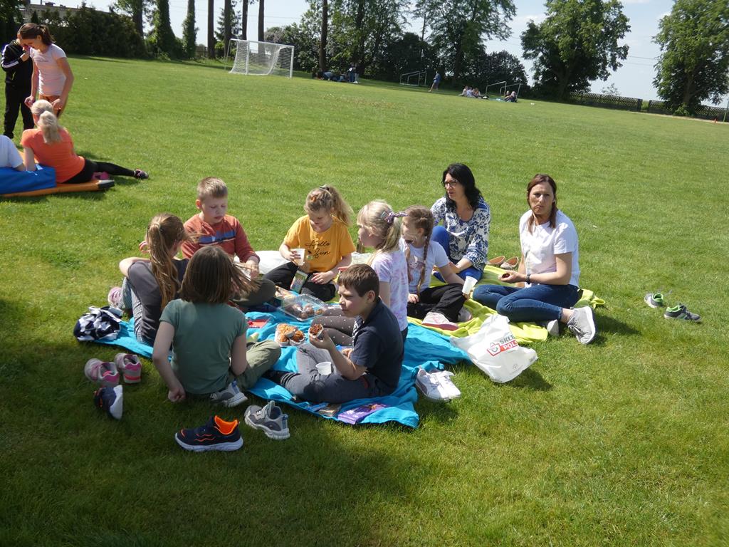 Po skończonych "podchodach" uczniowie wspólnie integrowali się na boisku szkolnym, uczestnicząc w wybranych przez siebie grach zespołowych.