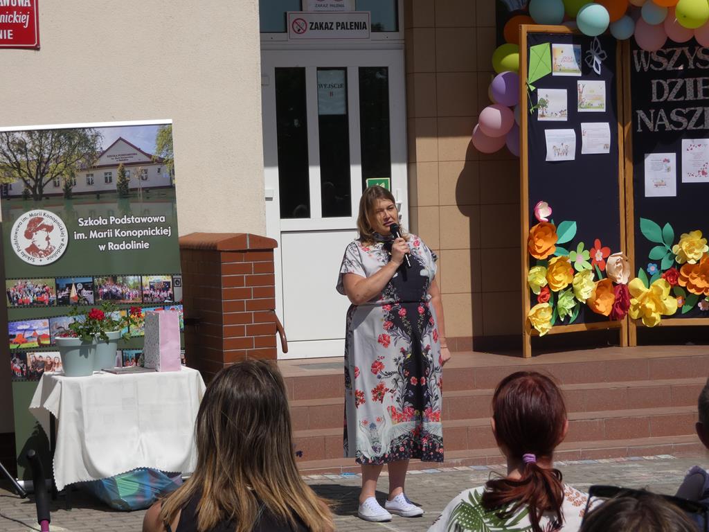 Przybyłych gości, rodziców i współpracowników powitała dyrektor szkoły pani Alina Kozłowska. Szczególne słowa powitania, połączone z życzeniami z okazji Dnia Dziecka, pani dyrektor skierowała do wszystkich uczniów, życząc im uśmiechu na twarzach, samych słonecznych dni, a na finiszu roku szkolnego wymarzonych ocen na świadectwie.