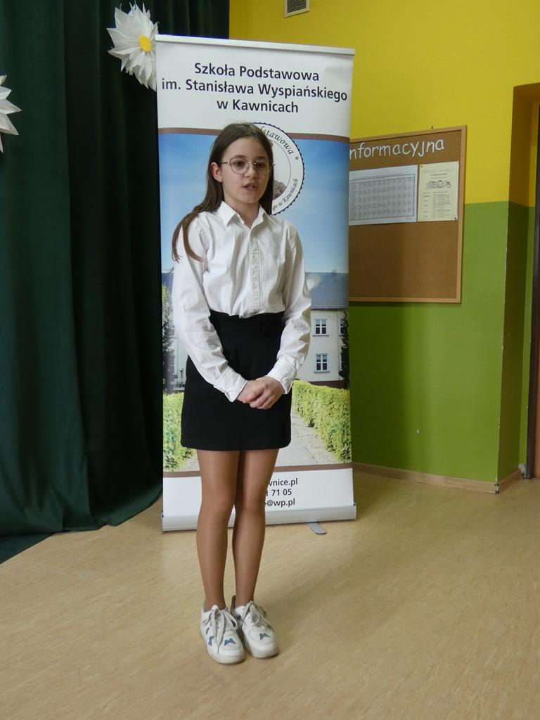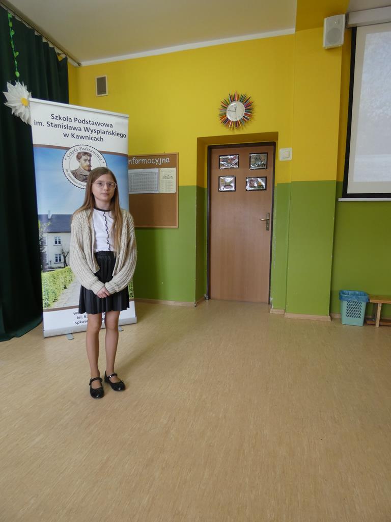 Nadia Szczepańska za recytację wiersza Danuty Wawiłow ,,A jak będę dorosła…”, zajęła I miejsce w kategorii klas czwartych; III miejsce w tej grupie wiekowej przypadło Nadii Kasprzyk – uczennica recytowała wiersz Jerzego Bielunasa ,,Czemu?”.