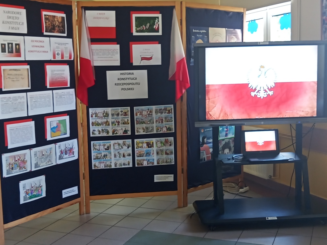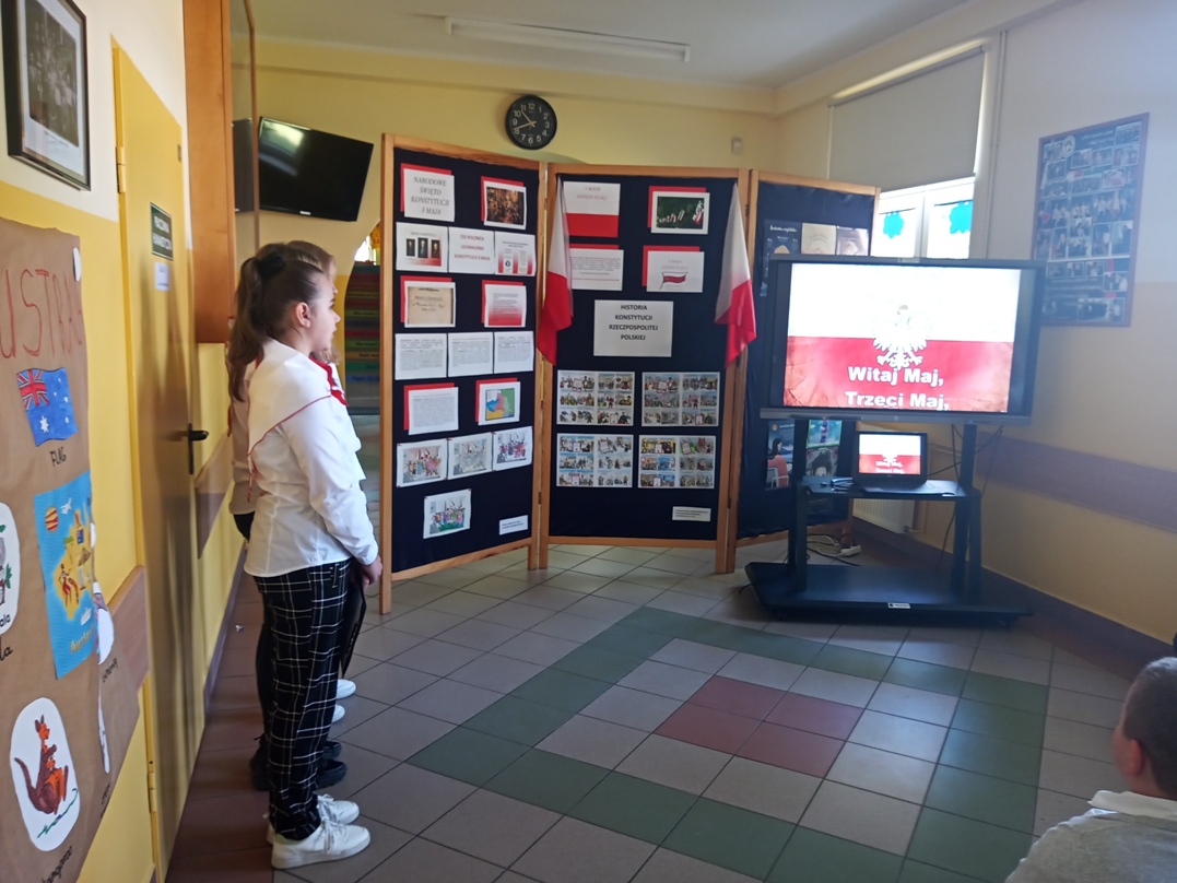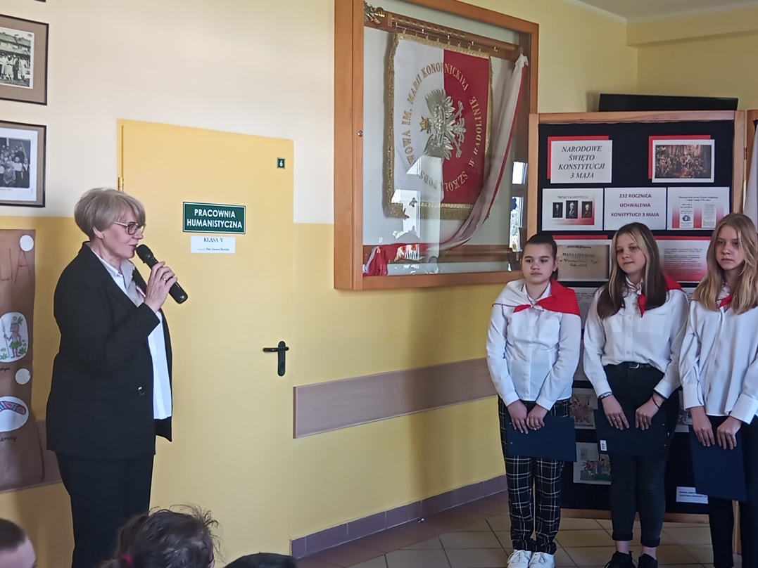 W piątek 28 kwietnia 2023r.społeczność Szkoły Podstawowej im. Marii Konopnickiej w Radolinie uczciła 232. rocznicę uchwalenia Konstytucji 3 Maja oraz 2 maja - Dzień Flagi. Uczennica Roksana Szlugaj odczytała ważne informacje dotyczące uchwalenia ustawy zasadniczej jak również symboliki barw narodowych. Uczennice Zuzanna Kurletoi Wiktoria Urbańska pięknie wyrecytowały wiersze patriotyczne o polskiej tożsamości i symbolach narodowych. Wszyscy razem odśpiewali hymn narodowy oraz Mazurek Trzeciego Maja.O szczegółach związanych z Narodowym Świętem Konstytucji 3 Maja oraz Dniem Flagi można było dowiedzieć się więcej z wystawy przygotowanej na tę okoliczność, na której znalazły się również prace plastyczne uczniów klas: czwartej, piątej szóstej i siódmej.