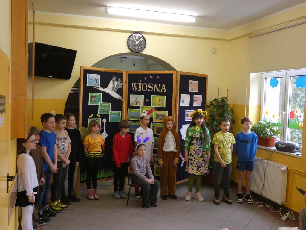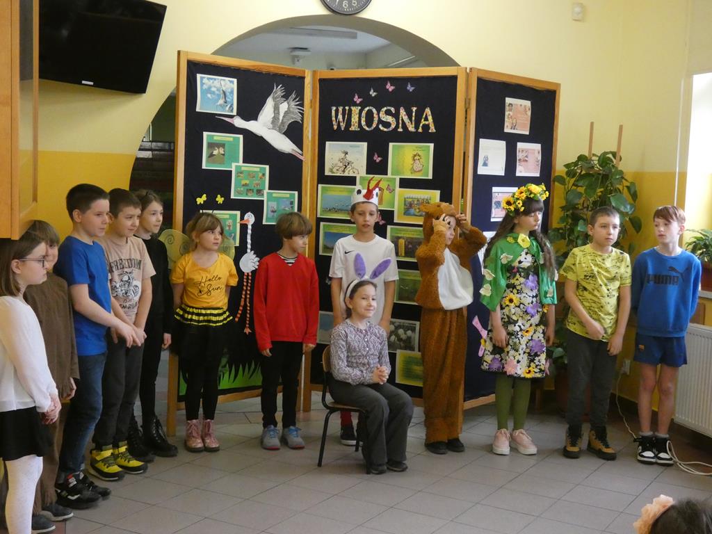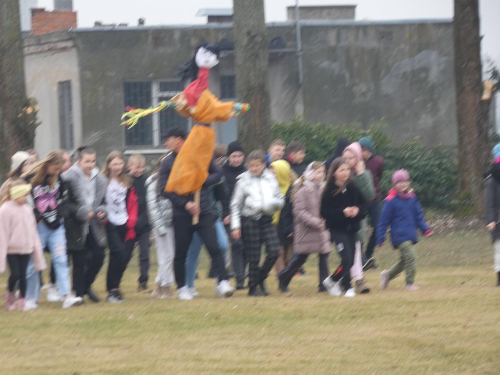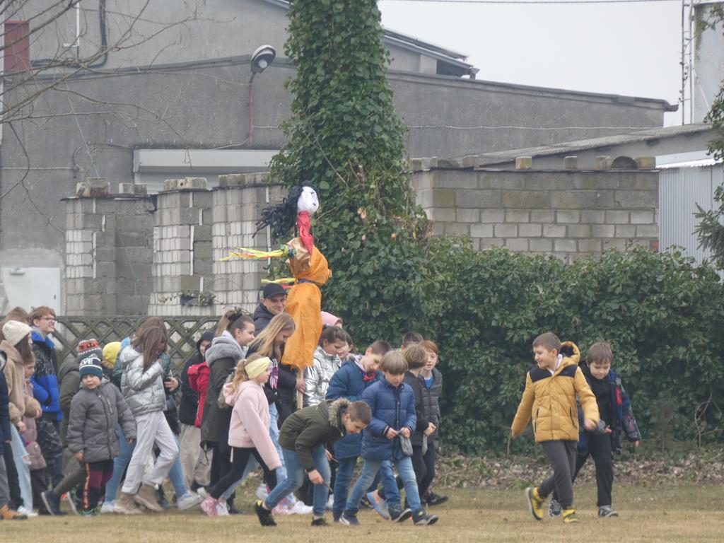 Pierwszy dzień wiosny zachwyca wszystkich, ponieważ rodzi się coś najcenniejszego, ŻYCIE. W naszej szkole pożegnanie z zimą i powitanie wiosny odbyło się w poniedziałek 20.03.2023 r. Z tej okazji uczniowie z koła aktorskiego pod opieką Pani Magdaleny Lewartowskiej przygotowały montaż słowno – muzyczny oraz piosenkę . Najmłodsi, czyli dzieci z oddziałów przedszkolnych w bardzo innowacyjny sposób przedstawiły powitanie wiosny w tańcu do utworu Antonio Vivaldiego - ,, Wiosna . Po występach artystycznych cała społeczność szkolna zebrała się przed budynkiem szkolnym , aby z Marzanną - słomianą kukłą przejść na boisko gdzie rozpoczęło się uroczyste powitanie wiosny. Dzieci powróciły do swoich klas z szerokim uśmiechem i nadzieją, że wreszcie zawitała tak upragniona wiosna.